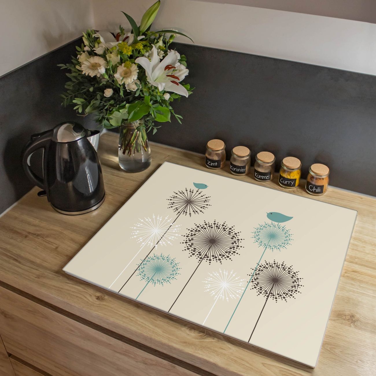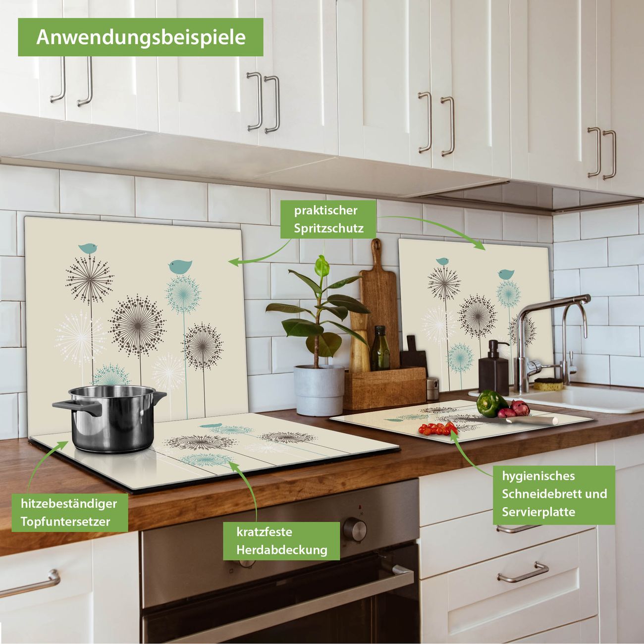 VIELSEITIG: Die Ceranfeldabdeckung ist vielseitig einsetzbar: ob als Spritzschutz hinter dem Herd für Ihre Küche oder als Glas Schneidebrett als hygienische und geruchsneutrale Unterlage. Sie können ebenfalls heiße Töpfe und Pfannen bis 100°C auf der Herdplattenabdeckung abstellen. Sie erhalten ein Multitalent für Ihre Küche. Die banjado Herdabdeckplatte aus Glas mit Motiv Kugelfontänen verdeckt mit einem schönen Motiv Ihr Ceranfeld bzw. Ihren Induktionsherd. Die Herdabdeckplatte ist vielseitig einsetzbar und passt sich dabei Ihrem Einrichtungsstil an. DESIGN: Die Herdabdeckung Kugelfontänen besteht aus hochwertigem, gehärtetem Glas mit einem unserer zahlreichen Motive. Sie haben die Wahl zwischen verschiedenen Maßen von einteiligen, zweiteiligen und einer dreiteiligen Herdabdeckung. Wählen Sie was zu Ihrer Einrichtung passt! DETAILS: Die Herdabdeckplatte ist vielseitig einsetzbar. Die Ecken sind für mehr Sicherheit dezent abgerundet, das Glas ist gehärtet. Sie erhalten separate Gummi Abstandshalter, damit Ihre Abdeckung rutschfest auf dem Herd steht. Diese können Sie frei positionieren, sodass die Herdabdeckung perfekt auf Ihrem Ceranfeld sitzt. BANJADO: Wir sind ein kleines Team aus dem Herzen von Sachsen und fertigen jeden Artikel nach Bestellung eigens für Sie an. Sie erhalten also keine preiswerte Importware, sondern Handarbeit. Auf Wunsch sind auch andere Farben und Größen möglich, kontakierten Sie uns gern.