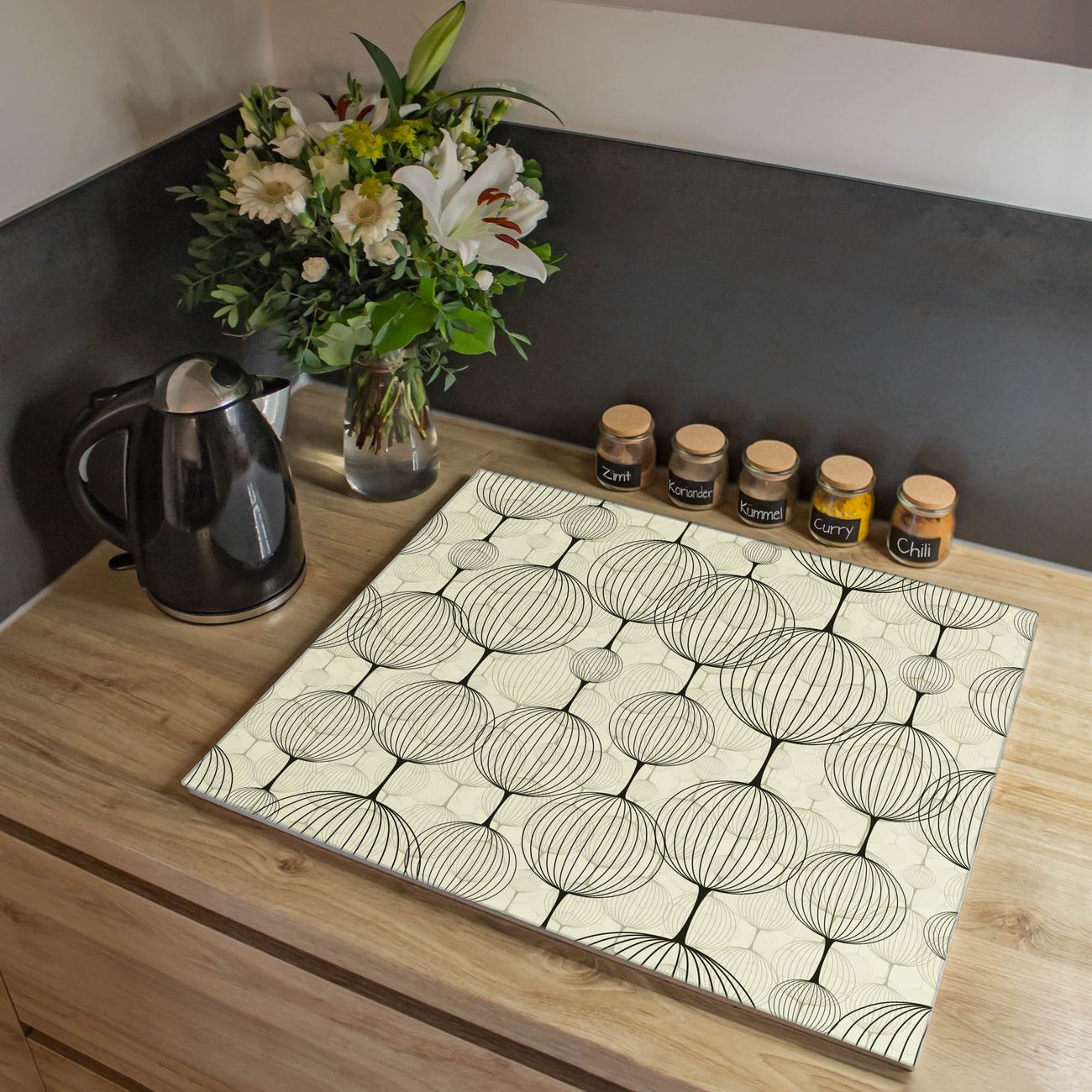 VIELSEITIG: Die Ceranfeldabdeckung ist vielseitig einsetzbar: ob als Spritzschutz hinter dem Herd für Ihre Küche oder als Glas Schneidebrett als hygienische und geruchsneutrale Unterlage. Sie können ebenfalls heiße Töpfe und Pfannen bis 100°C auf der Herdplattenabdeckung abstellen. Sie erhalten ein Multitalent für Ihre Küche. Die banjado Herdabdeckplatte aus Glas mit Motiv Lampions verdeckt mit einem schönen Motiv Ihr Ceranfeld bzw. Ihren Induktionsherd. Die Herdabdeckplatte ist vielseitig einsetzbar und passt sich dabei Ihrem Einrichtungsstil an. DESIGN: Die Herdabdeckung Lampions besteht aus hochwertigem, gehärtetem Glas mit einem unserer zahlreichen Motive. Sie haben die Wahl zwischen verschiedenen Maßen von einteiligen, zweiteiligen und einer dreiteiligen Herdabdeckung. Wählen Sie was zu Ihrer Einrichtung passt! DETAILS: Die Herdabdeckplatte ist vielseitig einsetzbar. Die Ecken sind für mehr Sicherheit dezent abgerundet, das Glas ist gehärtet. Sie erhalten separate Gummi Abstandshalter, damit Ihre Abdeckung rutschfest auf dem Herd steht. Diese können Sie frei positionieren, sodass die Herdabdeckung perfekt auf Ihrem Ceranfeld sitzt. BANJADO: Wir sind ein kleines Team aus dem Herzen von Sachsen und fertigen jeden Artikel nach Bestellung eigens für Sie an. Sie erhalten also keine preiswerte Importware, sondern Handarbeit. Auf Wunsch sind auch andere Farben und Größen möglich, kontakierten Sie uns gern.