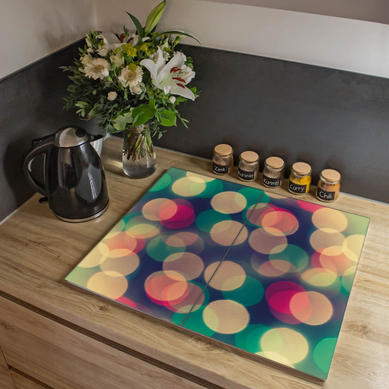 Herdabdeckplatte 1, 2 und 3 teilig Motiv Lichtpunkte Weiß Grün Rot