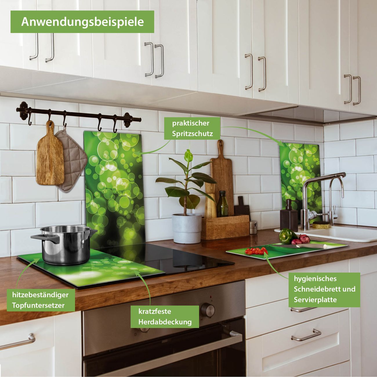 VIELSEITIG: Die Ceranfeldabdeckung ist vielseitig einsetzbar: ob als Spritzschutz hinter dem Herd für Ihre Küche oder als Glas Schneidebrett als hygienische und geruchsneutrale Unterlage. Sie können ebenfalls heiße Töpfe und Pfannen bis 100°C auf der Herdplattenabdeckung abstellen. Sie erhalten ein Multitalent für Ihre Küche. Die banjado Herdabdeckplatte aus Glas mit Motiv Lichtspiel verdeckt mit einem schönen Motiv Ihr Ceranfeld bzw. Ihren Induktionsherd. Die Herdabdeckplatte ist vielseitig einsetzbar und passt sich dabei Ihrem Einrichtungsstil an. DESIGN: Die Herdabdeckung Lichtspiel besteht aus hochwertigem, gehärtetem Glas mit einem unserer zahlreichen Motive. Sie haben die Wahl zwischen verschiedenen Maßen von einteiligen, zweiteiligen und einer dreiteiligen Herdabdeckung. Wählen Sie was zu Ihrer Einrichtung passt! DETAILS: Die Herdabdeckplatte ist vielseitig einsetzbar. Die Ecken sind für mehr Sicherheit dezent abgerundet, das Glas ist gehärtet. Sie erhalten separate Gummi Abstandshalter, damit Ihre Abdeckung rutschfest auf dem Herd steht. Diese können Sie frei positionieren, sodass die Herdabdeckung perfekt auf Ihrem Ceranfeld sitzt. BANJADO: Wir sind ein kleines Team aus dem Herzen von Sachsen und fertigen jeden Artikel nach Bestellung eigens für Sie an. Sie erhalten also keine preiswerte Importware, sondern Handarbeit. Auf Wunsch sind auch andere Farben und Größen möglich, kontakierten Sie uns gern.