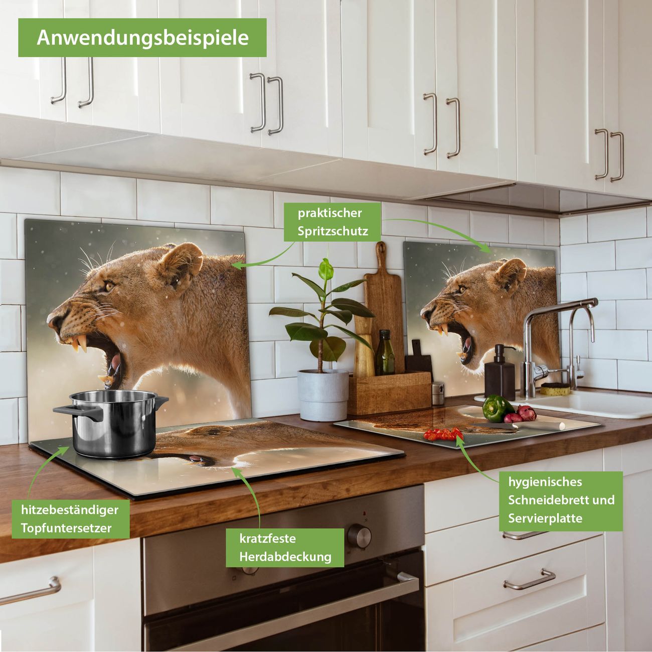 Herdabdeckplatte 1, 2 und 3 teilig Motiv Löwin