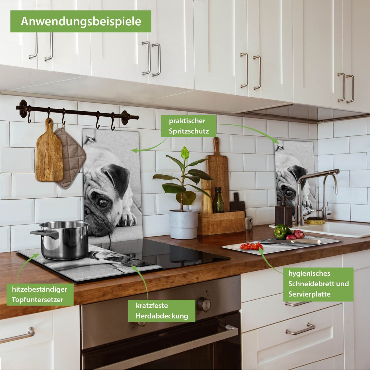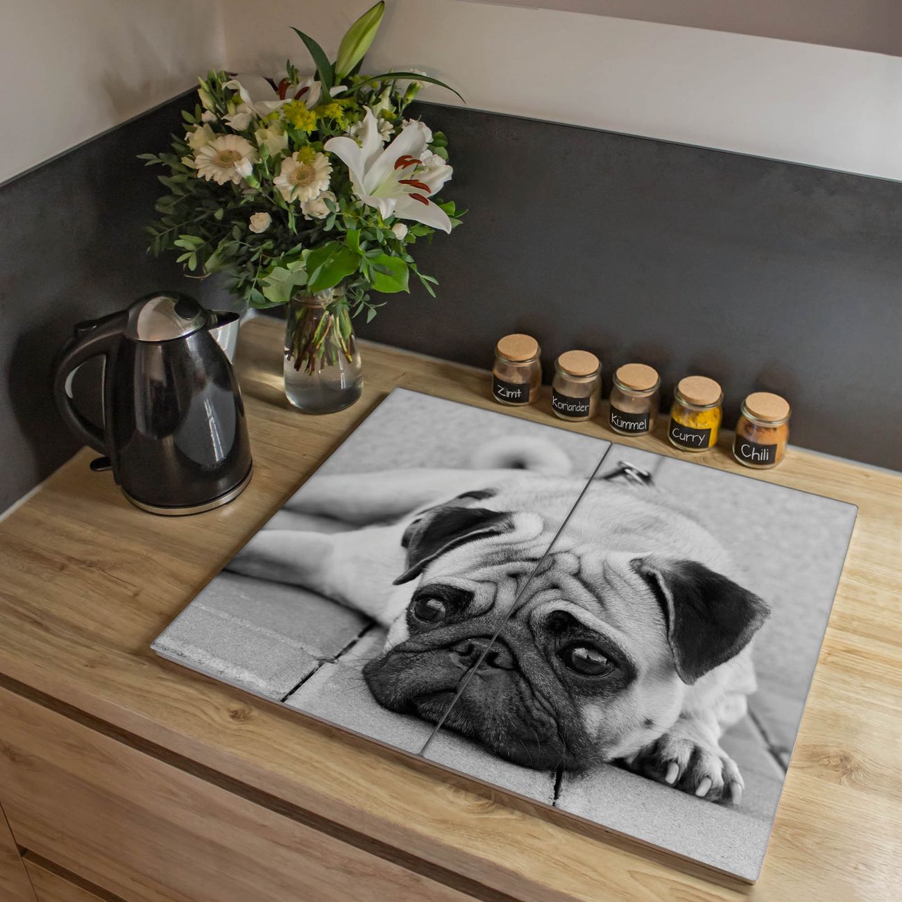 VIELSEITIG: Die Ceranfeldabdeckung ist vielseitig einsetzbar: ob als Spritzschutz hinter dem Herd für Ihre Küche oder als Glas Schneidebrett als hygienische und geruchsneutrale Unterlage. Sie können ebenfalls heiße Töpfe und Pfannen bis 100°C auf der Herdplattenabdeckung abstellen. Sie erhalten ein Multitalent für Ihre Küche. Die banjado Herdabdeckplatte aus Glas mit Motiv Lotty verdeckt mit einem schönen Motiv Ihr Ceranfeld bzw. Ihren Induktionsherd. Die Herdabdeckplatte ist vielseitig einsetzbar und passt sich dabei Ihrem Einrichtungsstil an. DESIGN: Die Herdabdeckung Lotty besteht aus hochwertigem, gehärtetem Glas mit einem unserer zahlreichen Motive. Sie haben die Wahl zwischen verschiedenen Maßen von einteiligen, zweiteiligen und einer dreiteiligen Herdabdeckung. Wählen Sie was zu Ihrer Einrichtung passt! DETAILS: Die Herdabdeckplatte ist vielseitig einsetzbar. Die Ecken sind für mehr Sicherheit dezent abgerundet, das Glas ist gehärtet. Sie erhalten separate Gummi Abstandshalter, damit Ihre Abdeckung rutschfest auf dem Herd steht. Diese können Sie frei positionieren, sodass die Herdabdeckung perfekt auf Ihrem Ceranfeld sitzt. BANJADO: Wir sind ein kleines Team aus dem Herzen von Sachsen und fertigen jeden Artikel nach Bestellung eigens für Sie an. Sie erhalten also keine preiswerte Importware, sondern Handarbeit. Auf Wunsch sind auch andere Farben und Größen möglich, kontakierten Sie uns gern.