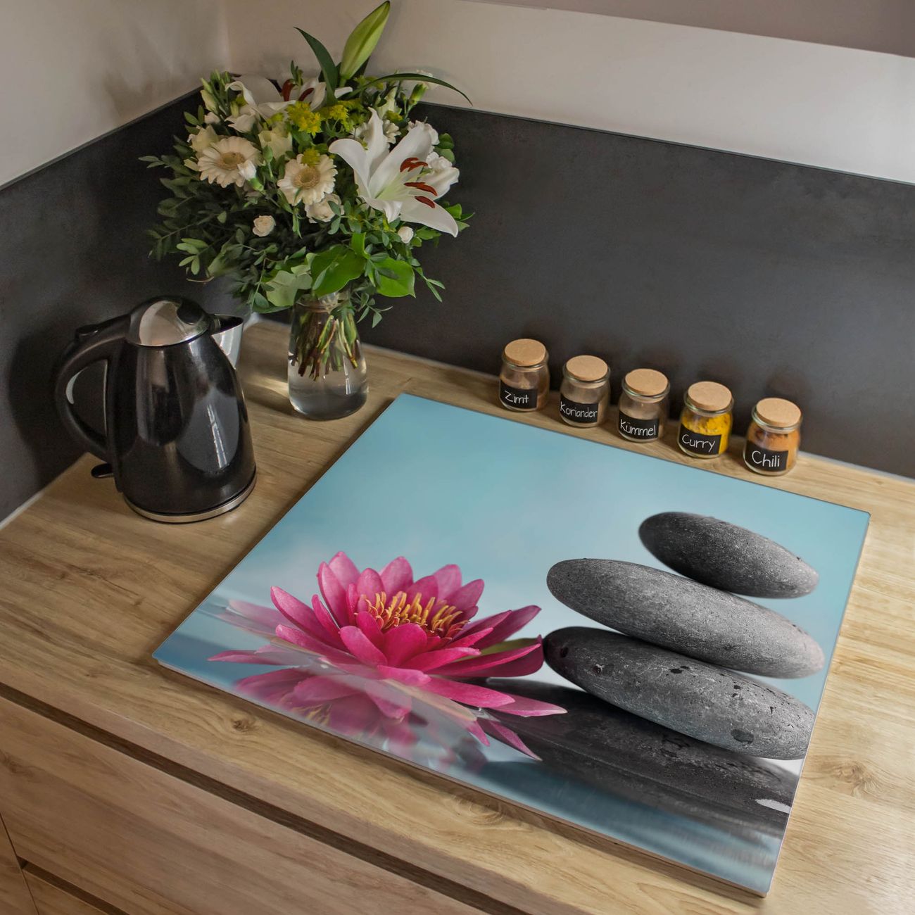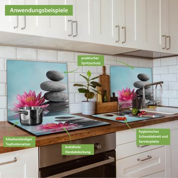 Herdabdeckplatte 1, 2 und 3 teilig Motiv Lotus Und Steine