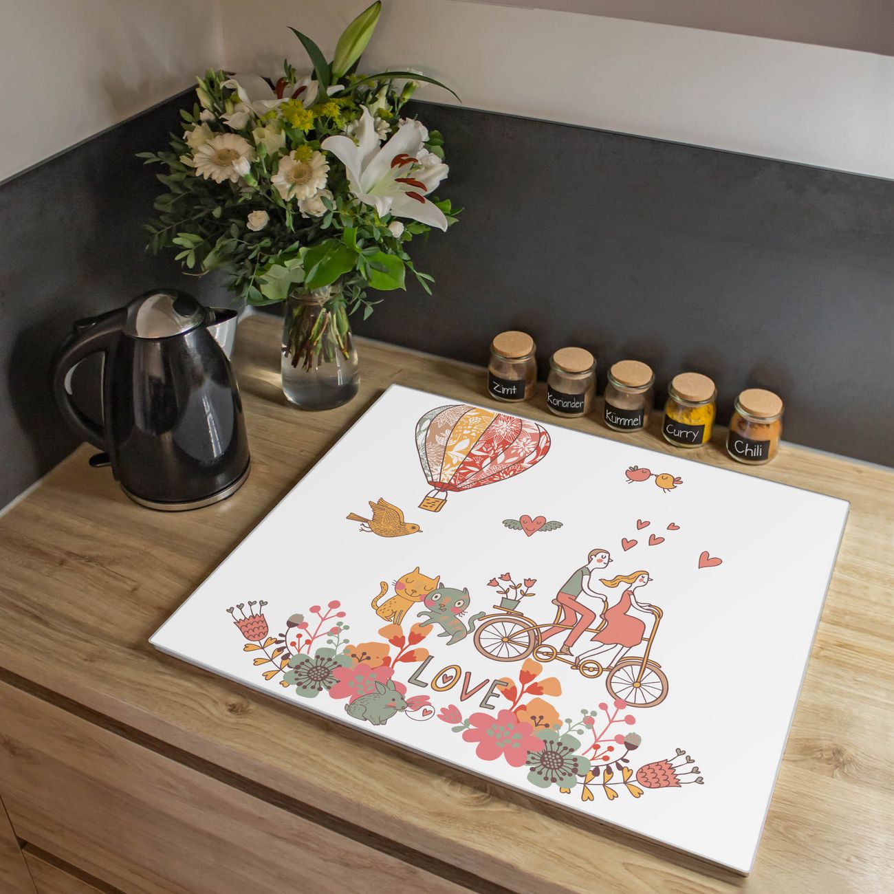 Herdabdeckplatte 1, 2 und 3 teilig Motiv Love