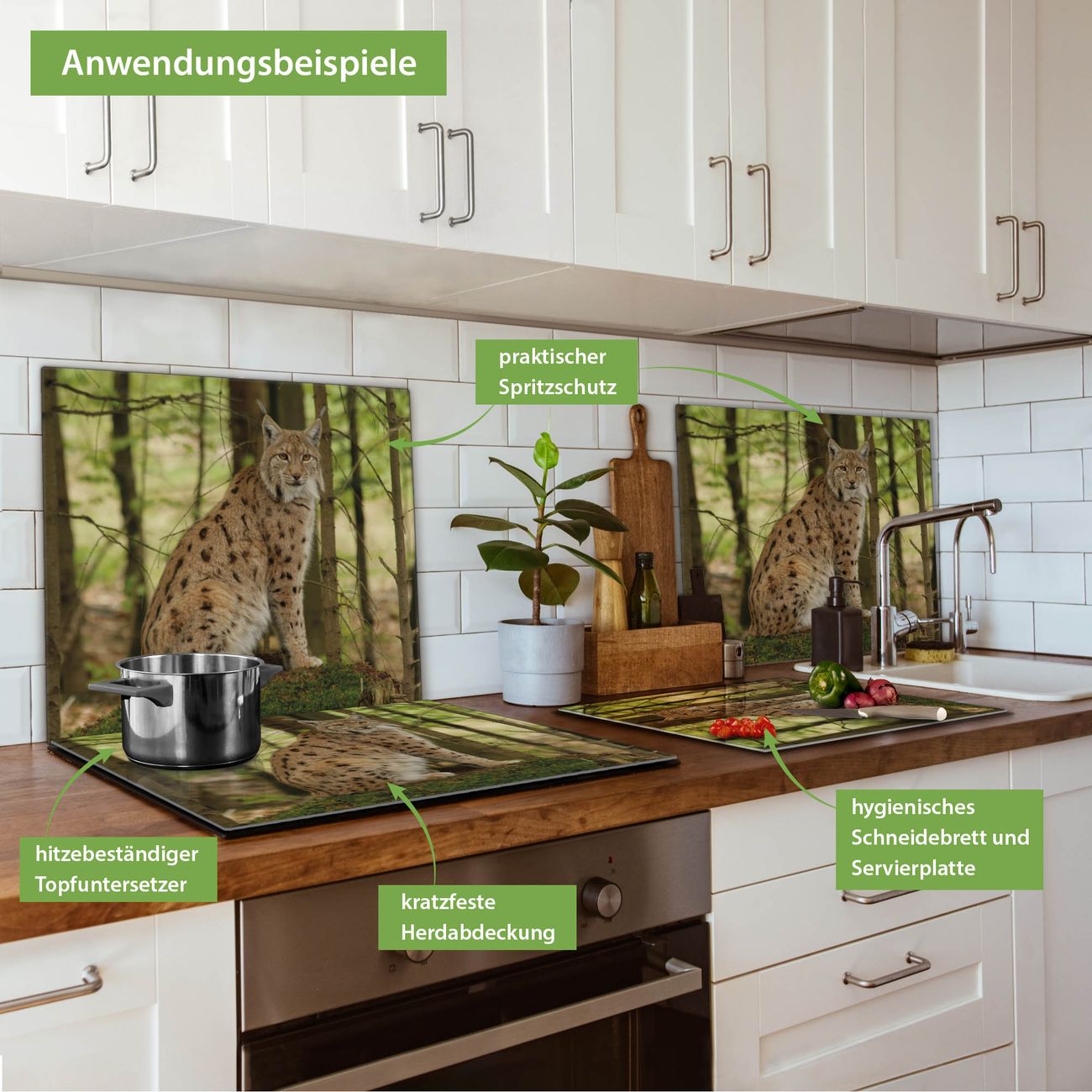 Herdabdeckplatte 1, 2 und 3 teilig Motiv Luchs