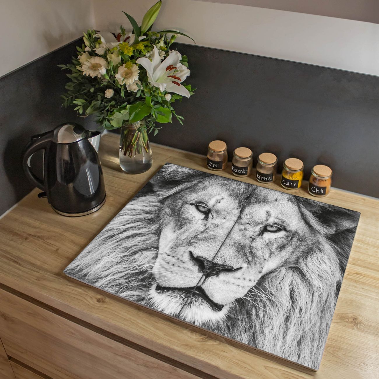 VIELSEITIG: Die Ceranfeldabdeckung ist vielseitig einsetzbar: ob als Spritzschutz hinter dem Herd für Ihre Küche oder als Glas Schneidebrett als hygienische und geruchsneutrale Unterlage. Sie können ebenfalls heiße Töpfe und Pfannen bis 100°C auf der Herdplattenabdeckung abstellen. Sie erhalten ein Multitalent für Ihre Küche. Die banjado Herdabdeckplatte aus Glas mit Motiv Ludwig verdeckt mit einem schönen Motiv Ihr Ceranfeld bzw. Ihren Induktionsherd. Die Herdabdeckplatte ist vielseitig einsetzbar und passt sich dabei Ihrem Einrichtungsstil an. DESIGN: Die Herdabdeckung Ludwig besteht aus hochwertigem, gehärtetem Glas mit einem unserer zahlreichen Motive. Sie haben die Wahl zwischen verschiedenen Maßen von einteiligen, zweiteiligen und einer dreiteiligen Herdabdeckung. Wählen Sie was zu Ihrer Einrichtung passt! DETAILS: Die Herdabdeckplatte ist vielseitig einsetzbar. Die Ecken sind für mehr Sicherheit dezent abgerundet, das Glas ist gehärtet. Sie erhalten separate Gummi Abstandshalter, damit Ihre Abdeckung rutschfest auf dem Herd steht. Diese können Sie frei positionieren, sodass die Herdabdeckung perfekt auf Ihrem Ceranfeld sitzt. BANJADO: Wir sind ein kleines Team aus dem Herzen von Sachsen und fertigen jeden Artikel nach Bestellung eigens für Sie an. Sie erhalten also keine preiswerte Importware, sondern Handarbeit. Auf Wunsch sind auch andere Farben und Größen möglich, kontakierten Sie uns gern.