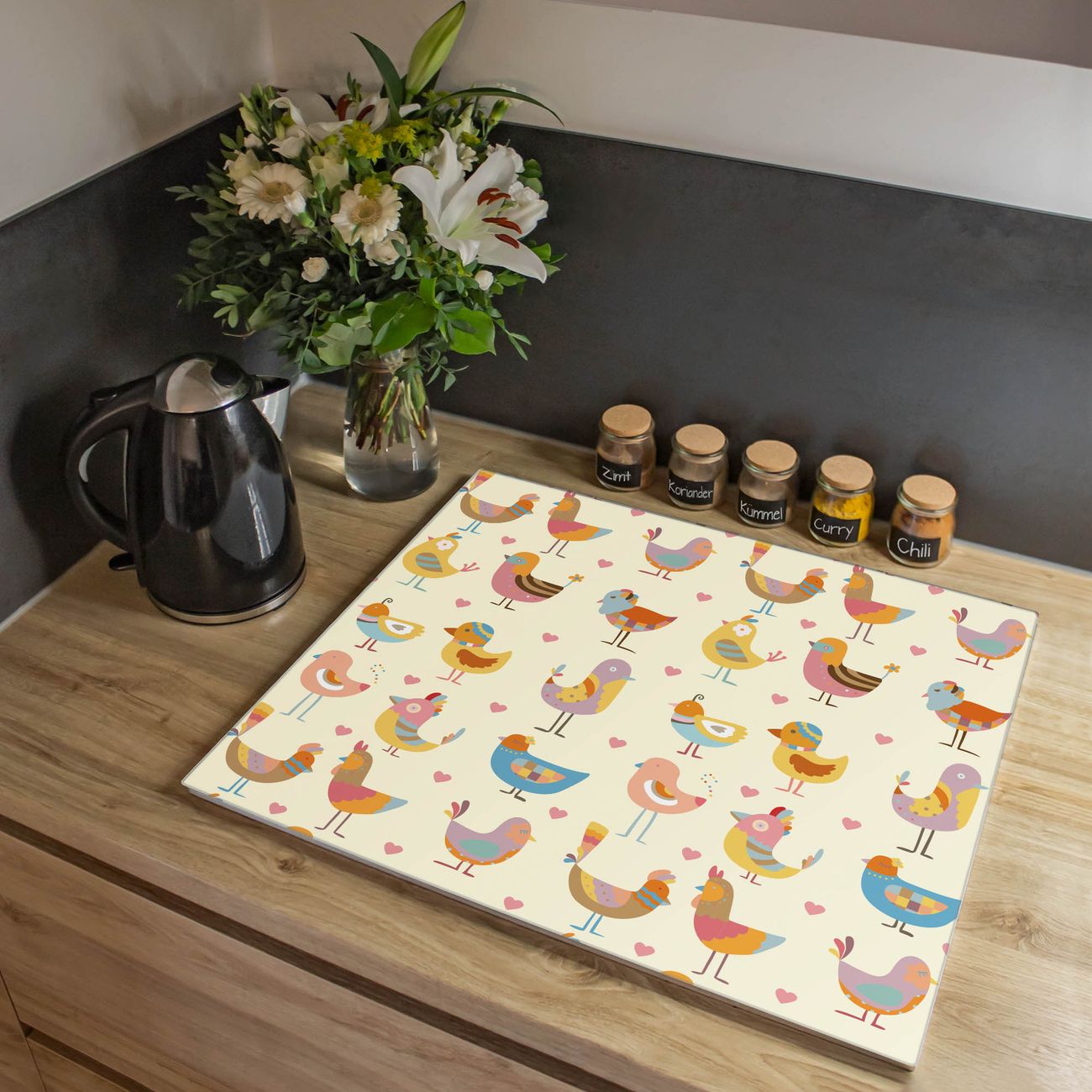 Herdabdeckplatte 1, 2 und 3 teilig Motiv Lustige Vögel