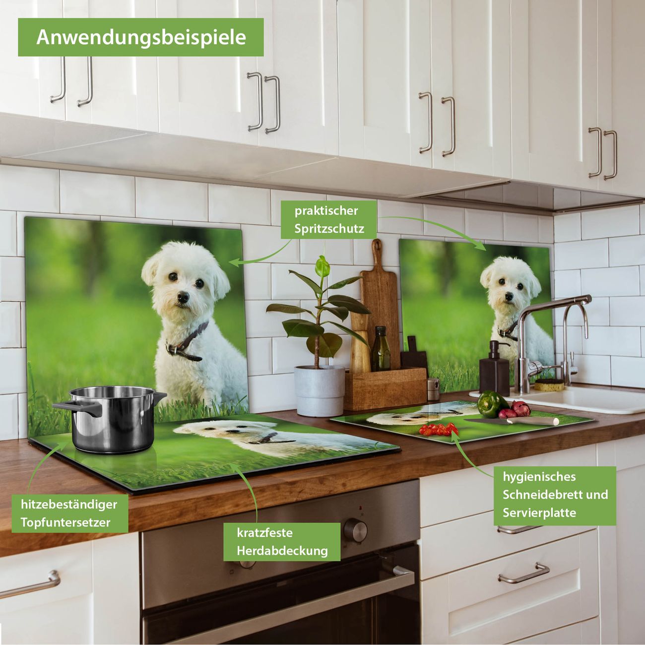 VIELSEITIG: Die Ceranfeldabdeckung ist vielseitig einsetzbar: ob als Spritzschutz hinter dem Herd für Ihre Küche oder als Glas Schneidebrett als hygienische und geruchsneutrale Unterlage. Sie können ebenfalls heiße Töpfe und Pfannen bis 100°C auf der Herdplattenabdeckung abstellen. Sie erhalten ein Multitalent für Ihre Küche. Die banjado Herdabdeckplatte aus Glas mit Motiv Mareike verdeckt mit einem schönen Motiv Ihr Ceranfeld bzw. Ihren Induktionsherd. Die Herdabdeckplatte ist vielseitig einsetzbar und passt sich dabei Ihrem Einrichtungsstil an. DESIGN: Die Herdabdeckung Mareike besteht aus hochwertigem, gehärtetem Glas mit einem unserer zahlreichen Motive. Sie haben die Wahl zwischen verschiedenen Maßen von einteiligen, zweiteiligen und einer dreiteiligen Herdabdeckung. Wählen Sie was zu Ihrer Einrichtung passt! DETAILS: Die Herdabdeckplatte ist vielseitig einsetzbar. Die Ecken sind für mehr Sicherheit dezent abgerundet, das Glas ist gehärtet. Sie erhalten separate Gummi Abstandshalter, damit Ihre Abdeckung rutschfest auf dem Herd steht. Diese können Sie frei positionieren, sodass die Herdabdeckung perfekt auf Ihrem Ceranfeld sitzt. BANJADO: Wir sind ein kleines Team aus dem Herzen von Sachsen und fertigen jeden Artikel nach Bestellung eigens für Sie an. Sie erhalten also keine preiswerte Importware, sondern Handarbeit. Auf Wunsch sind auch andere Farben und Größen möglich, kontakierten Sie uns gern.