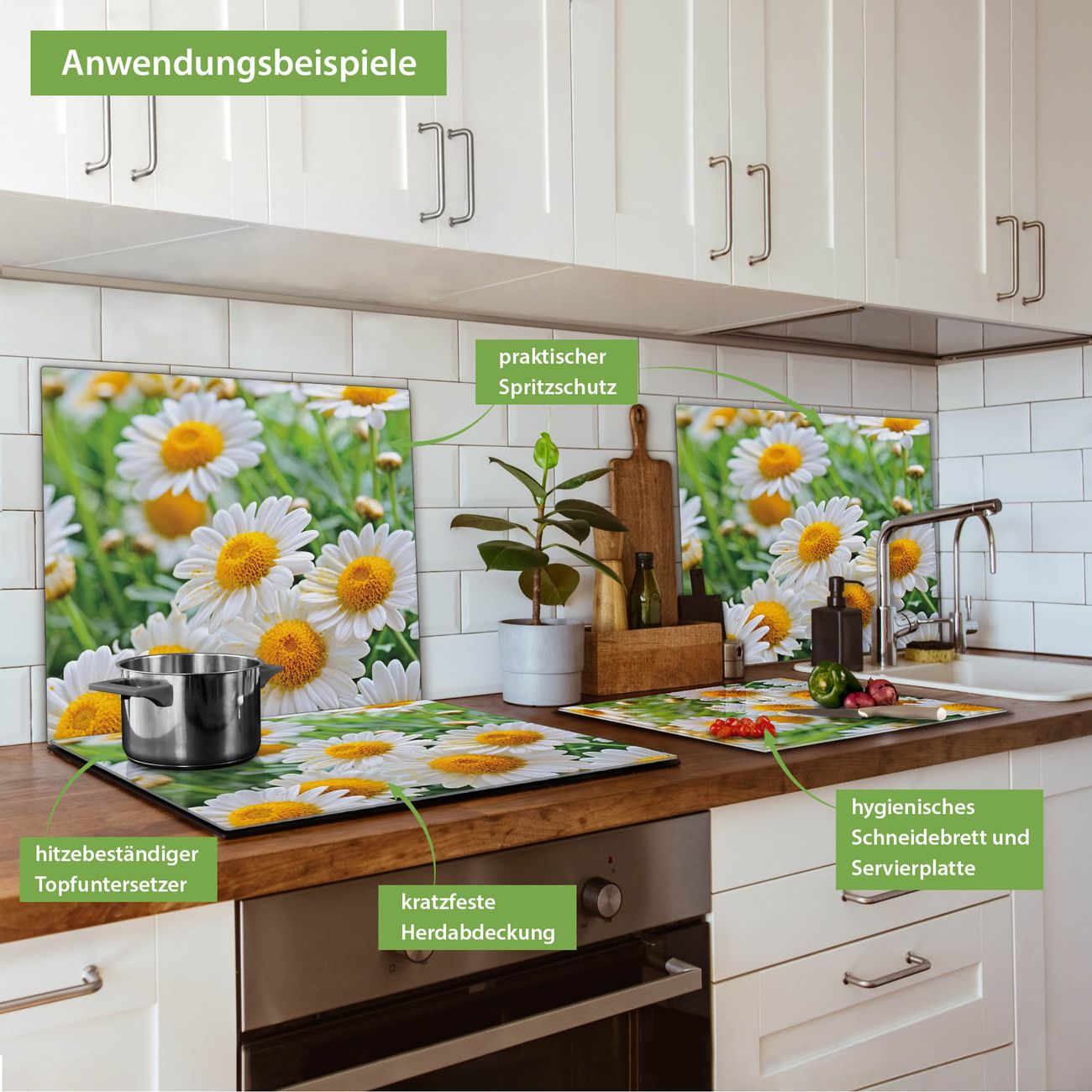 Herdabdeckplatte 1, 2 und 3 teilig Motiv Margeriten Illustration