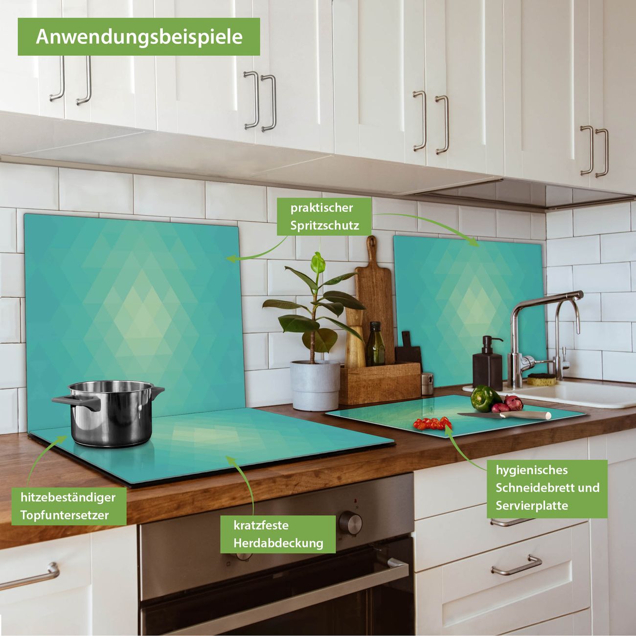 VIELSEITIG: Die Ceranfeldabdeckung ist vielseitig einsetzbar: ob als Spritzschutz hinter dem Herd für Ihre Küche oder als Glas Schneidebrett als hygienische und geruchsneutrale Unterlage. Sie können ebenfalls heiße Töpfe und Pfannen bis 100°C auf der Herdplattenabdeckung abstellen. Sie erhalten ein Multitalent für Ihre Küche. Die banjado Herdabdeckplatte aus Glas mit Motiv Meeresblau verdeckt mit einem schönen Motiv Ihr Ceranfeld bzw. Ihren Induktionsherd. Die Herdabdeckplatte ist vielseitig einsetzbar und passt sich dabei Ihrem Einrichtungsstil an. DESIGN: Die Herdabdeckung Meeresblau besteht aus hochwertigem, gehärtetem Glas mit einem unserer zahlreichen Motive. Sie haben die Wahl zwischen verschiedenen Maßen von einteiligen, zweiteiligen und einer dreiteiligen Herdabdeckung. Wählen Sie was zu Ihrer Einrichtung passt! DETAILS: Die Herdabdeckplatte ist vielseitig einsetzbar. Die Ecken sind für mehr Sicherheit dezent abgerundet, das Glas ist gehärtet. Sie erhalten separate Gummi Abstandshalter, damit Ihre Abdeckung rutschfest auf dem Herd steht. Diese können Sie frei positionieren, sodass die Herdabdeckung perfekt auf Ihrem Ceranfeld sitzt. BANJADO: Wir sind ein kleines Team aus dem Herzen von Sachsen und fertigen jeden Artikel nach Bestellung eigens für Sie an. Sie erhalten also keine preiswerte Importware, sondern Handarbeit. Auf Wunsch sind auch andere Farben und Größen möglich, kontakierten Sie uns gern.