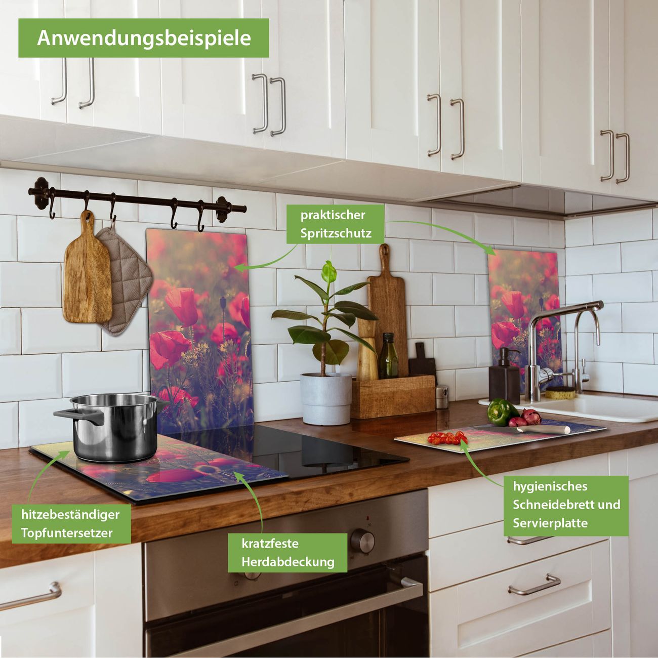 Herdabdeckplatte 1, 2 und 3 teilig Motiv Mohn