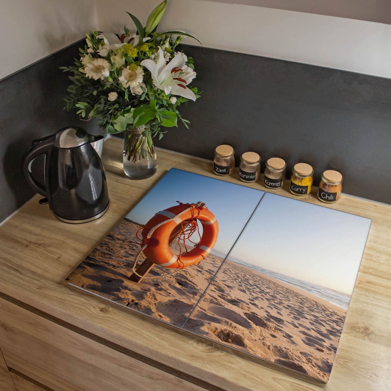 VIELSEITIG: Die Ceranfeldabdeckung ist vielseitig einsetzbar: ob als Spritzschutz hinter dem Herd für Ihre Küche oder als Glas Schneidebrett als hygienische und geruchsneutrale Unterlage. Sie können ebenfalls heiße Töpfe und Pfannen bis 100°C auf der Herdplattenabdeckung abstellen. Sie erhalten ein Multitalent für Ihre Küche. Die banjado Herdabdeckplatte aus Glas mit Motiv Morgens Am Strand verdeckt mit einem schönen Motiv Ihr Ceranfeld bzw. Ihren Induktionsherd. Die Herdabdeckplatte ist vielseitig einsetzbar und passt sich dabei Ihrem Einrichtungsstil an. DESIGN: Die Herdabdeckung Morgens Am Strand besteht aus hochwertigem, gehärtetem Glas mit einem unserer zahlreichen Motive. Sie haben die Wahl zwischen verschiedenen Maßen von einteiligen, zweiteiligen und einer dreiteiligen Herdabdeckung. Wählen Sie was zu Ihrer Einrichtung passt! DETAILS: Die Herdabdeckplatte ist vielseitig einsetzbar. Die Ecken sind für mehr Sicherheit dezent abgerundet, das Glas ist gehärtet. Sie erhalten separate Gummi Abstandshalter, damit Ihre Abdeckung rutschfest auf dem Herd steht. Diese können Sie frei positionieren, sodass die Herdabdeckung perfekt auf Ihrem Ceranfeld sitzt. BANJADO: Wir sind ein kleines Team aus dem Herzen von Sachsen und fertigen jeden Artikel nach Bestellung eigens für Sie an. Sie erhalten also keine preiswerte Importware, sondern Handarbeit. Auf Wunsch sind auch andere Farben und Größen möglich, kontakierten Sie uns gern.