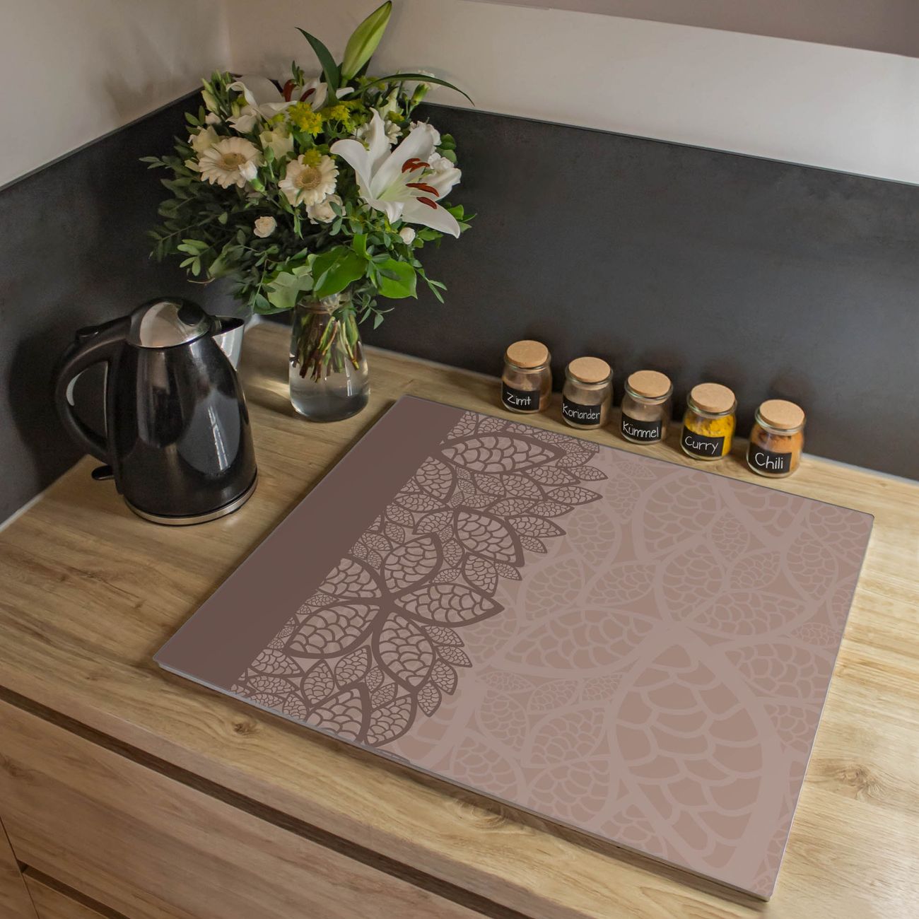 Herdabdeckplatte 1, 2 und 3 teilig Motiv Muster Blätter