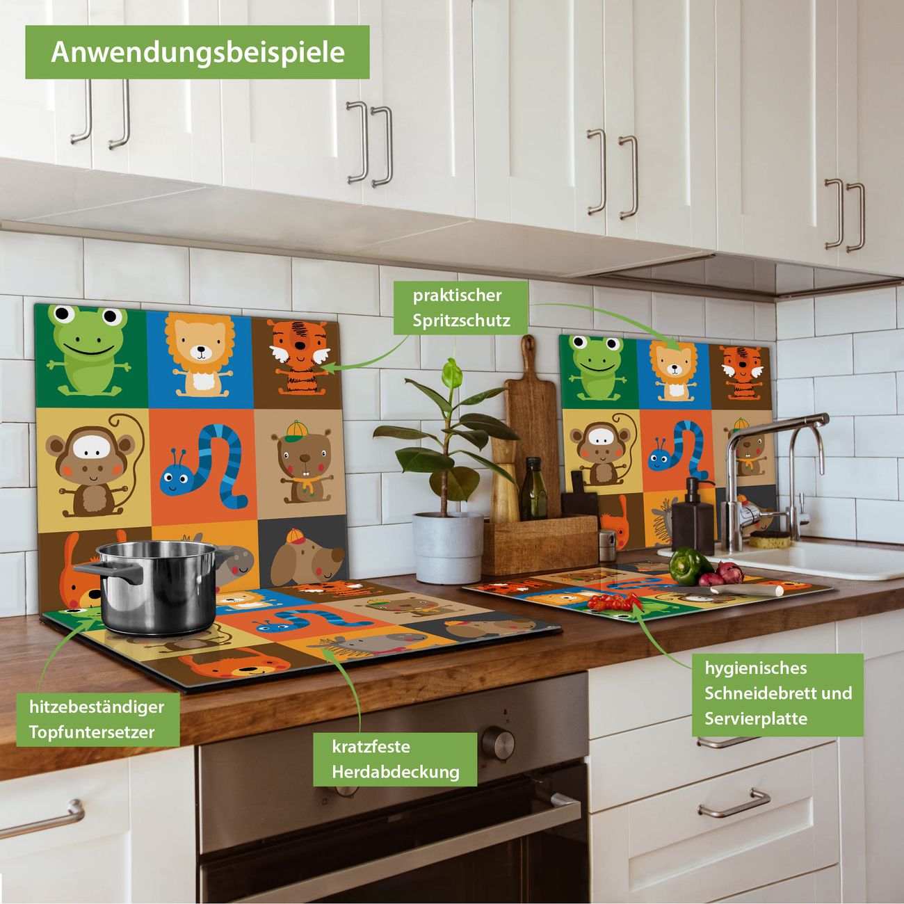 VIELSEITIG: Die Ceranfeldabdeckung ist vielseitig einsetzbar: ob als Spritzschutz hinter dem Herd für Ihre Küche oder als Glas Schneidebrett als hygienische und geruchsneutrale Unterlage. Sie können ebenfalls heiße Töpfe und Pfannen bis 100°C auf der Herdplattenabdeckung abstellen. Sie erhalten ein Multitalent für Ihre Küche. Die banjado Herdabdeckplatte aus Glas mit Motiv Offene Arme verdeckt mit einem schönen Motiv Ihr Ceranfeld bzw. Ihren Induktionsherd. Die Herdabdeckplatte ist vielseitig einsetzbar und passt sich dabei Ihrem Einrichtungsstil an. DESIGN: Die Herdabdeckung Offene Arme besteht aus hochwertigem, gehärtetem Glas mit einem unserer zahlreichen Motive. Sie haben die Wahl zwischen verschiedenen Maßen von einteiligen, zweiteiligen und einer dreiteiligen Herdabdeckung. Wählen Sie was zu Ihrer Einrichtung passt! DETAILS: Die Herdabdeckplatte ist vielseitig einsetzbar. Die Ecken sind für mehr Sicherheit dezent abgerundet, das Glas ist gehärtet. Sie erhalten separate Gummi Abstandshalter, damit Ihre Abdeckung rutschfest auf dem Herd steht. Diese können Sie frei positionieren, sodass die Herdabdeckung perfekt auf Ihrem Ceranfeld sitzt. BANJADO: Wir sind ein kleines Team aus dem Herzen von Sachsen und fertigen jeden Artikel nach Bestellung eigens für Sie an. Sie erhalten also keine preiswerte Importware, sondern Handarbeit. Auf Wunsch sind auch andere Farben und Größen möglich, kontakierten Sie uns gern.