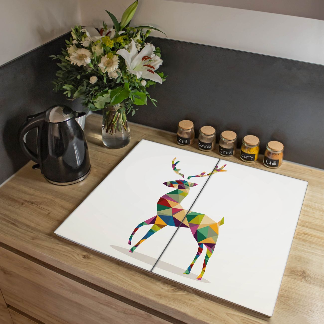 Herdabdeckplatte 1, 2 und 3 teilig Motiv Origami Hirsch