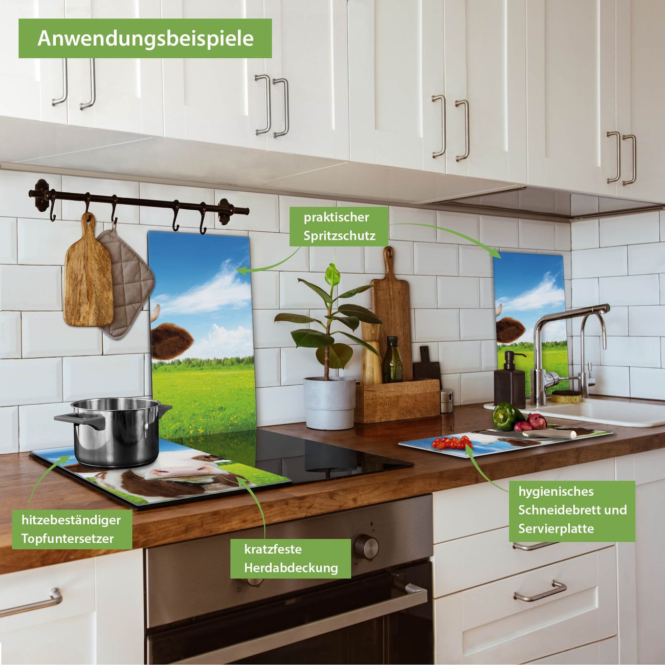 VIELSEITIG: Die Ceranfeldabdeckung ist vielseitig einsetzbar: ob als Spritzschutz hinter dem Herd für Ihre Küche oder als Glas Schneidebrett als hygienische und geruchsneutrale Unterlage. Sie können ebenfalls heiße Töpfe und Pfannen bis 100°C auf der Herdplattenabdeckung abstellen. Sie erhalten ein Multitalent für Ihre Küche. Die banjado Herdabdeckplatte aus Glas mit Motiv Pardon verdeckt mit einem schönen Motiv Ihr Ceranfeld bzw. Ihren Induktionsherd. Die Herdabdeckplatte ist vielseitig einsetzbar und passt sich dabei Ihrem Einrichtungsstil an. DESIGN: Die Herdabdeckung Pardon besteht aus hochwertigem, gehärtetem Glas mit einem unserer zahlreichen Motive. Sie haben die Wahl zwischen verschiedenen Maßen von einteiligen, zweiteiligen und einer dreiteiligen Herdabdeckung. Wählen Sie was zu Ihrer Einrichtung passt! DETAILS: Die Herdabdeckplatte ist vielseitig einsetzbar. Die Ecken sind für mehr Sicherheit dezent abgerundet, das Glas ist gehärtet. Sie erhalten separate Gummi Abstandshalter, damit Ihre Abdeckung rutschfest auf dem Herd steht. Diese können Sie frei positionieren, sodass die Herdabdeckung perfekt auf Ihrem Ceranfeld sitzt. BANJADO: Wir sind ein kleines Team aus dem Herzen von Sachsen und fertigen jeden Artikel nach Bestellung eigens für Sie an. Sie erhalten also keine preiswerte Importware, sondern Handarbeit. Auf Wunsch sind auch andere Farben und Größen möglich, kontakierten Sie uns gern.