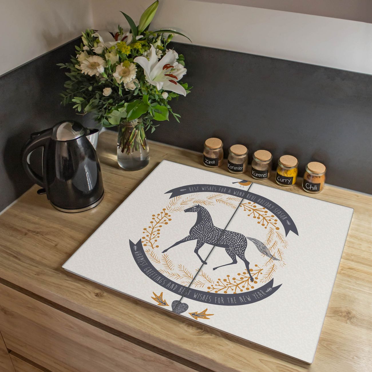 Herdabdeckplatte 1, 2 und 3 teilig Motiv Pferd und Vogel