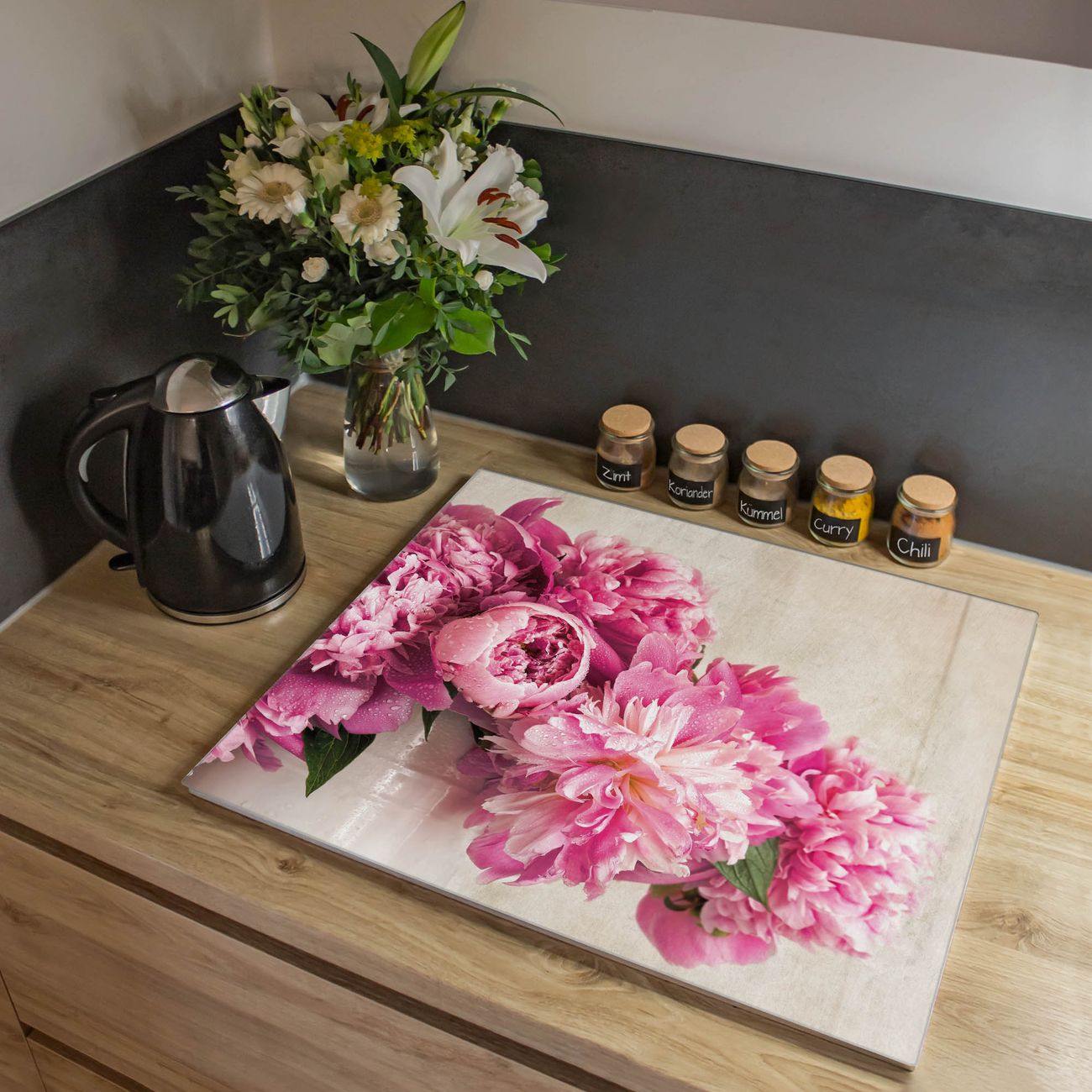 Herdabdeckplatte 1, 2 und 3 teilig Motiv Pfingstrose