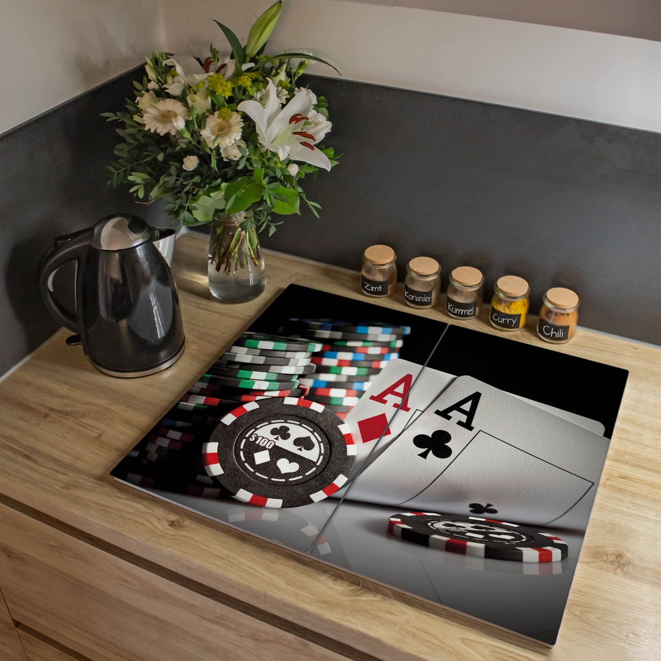 Herdabdeckplatte 1, 2 und 3 teilig Motiv Poker