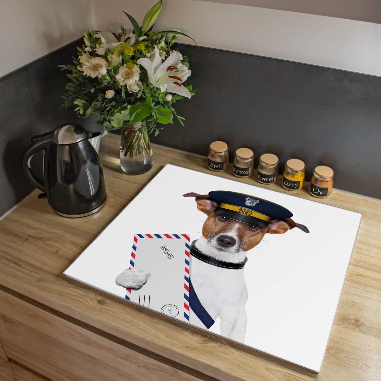 Herdabdeckplatte 1, 2 und 3 teilig Motiv Postbote Jack Russel