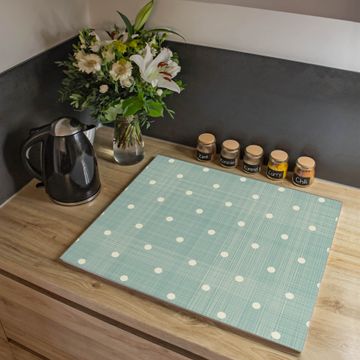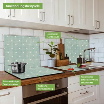 VIELSEITIG: Die Ceranfeldabdeckung ist vielseitig einsetzbar: ob als Spritzschutz hinter dem Herd für Ihre Küche oder als Glas Schneidebrett als hygienische und geruchsneutrale Unterlage. Sie können ebenfalls heiße Töpfe und Pfannen bis 100°C auf der Herdplattenabdeckung abstellen. Sie erhalten ein Multitalent für Ihre Küche. Die banjado Herdabdeckplatte aus Glas mit Motiv Punkte Lindgrün verdeckt mit einem schönen Motiv Ihr Ceranfeld bzw. Ihren Induktionsherd. Die Herdabdeckplatte ist vielseitig einsetzbar und passt sich dabei Ihrem Einrichtungsstil an. DESIGN: Die Herdabdeckung Punkte Lindgrün besteht aus hochwertigem, gehärtetem Glas mit einem unserer zahlreichen Motive. Sie haben die Wahl zwischen verschiedenen Maßen von einteiligen, zweiteiligen und einer dreiteiligen Herdabdeckung. Wählen Sie was zu Ihrer Einrichtung passt! DETAILS: Die Herdabdeckplatte ist vielseitig einsetzbar. Die Ecken sind für mehr Sicherheit dezent abgerundet, das Glas ist gehärtet. Sie erhalten separate Gummi Abstandshalter, damit Ihre Abdeckung rutschfest auf dem Herd steht. Diese können Sie frei positionieren, sodass die Herdabdeckung perfekt auf Ihrem Ceranfeld sitzt. BANJADO: Wir sind ein kleines Team aus dem Herzen von Sachsen und fertigen jeden Artikel nach Bestellung eigens für Sie an. Sie erhalten also keine preiswerte Importware, sondern Handarbeit. Auf Wunsch sind auch andere Farben und Größen möglich, kontakierten Sie uns gern.