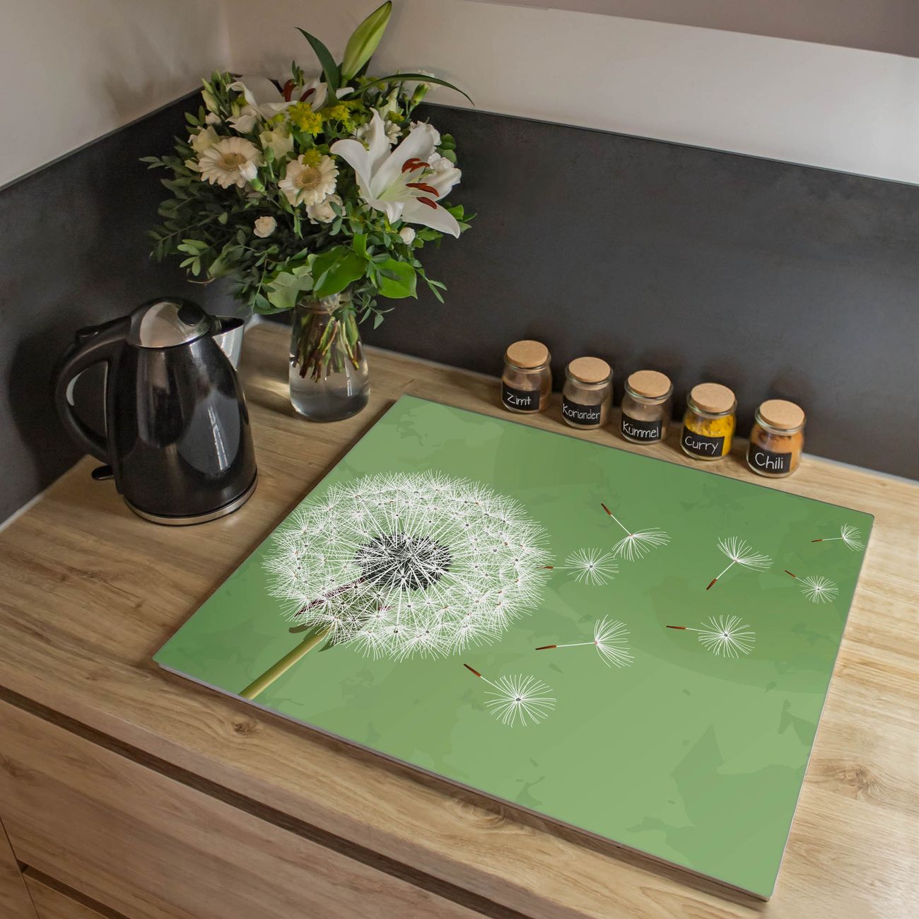 Herdabdeckplatte 1, 2 und 3 teilig Motiv Pusteblume 3