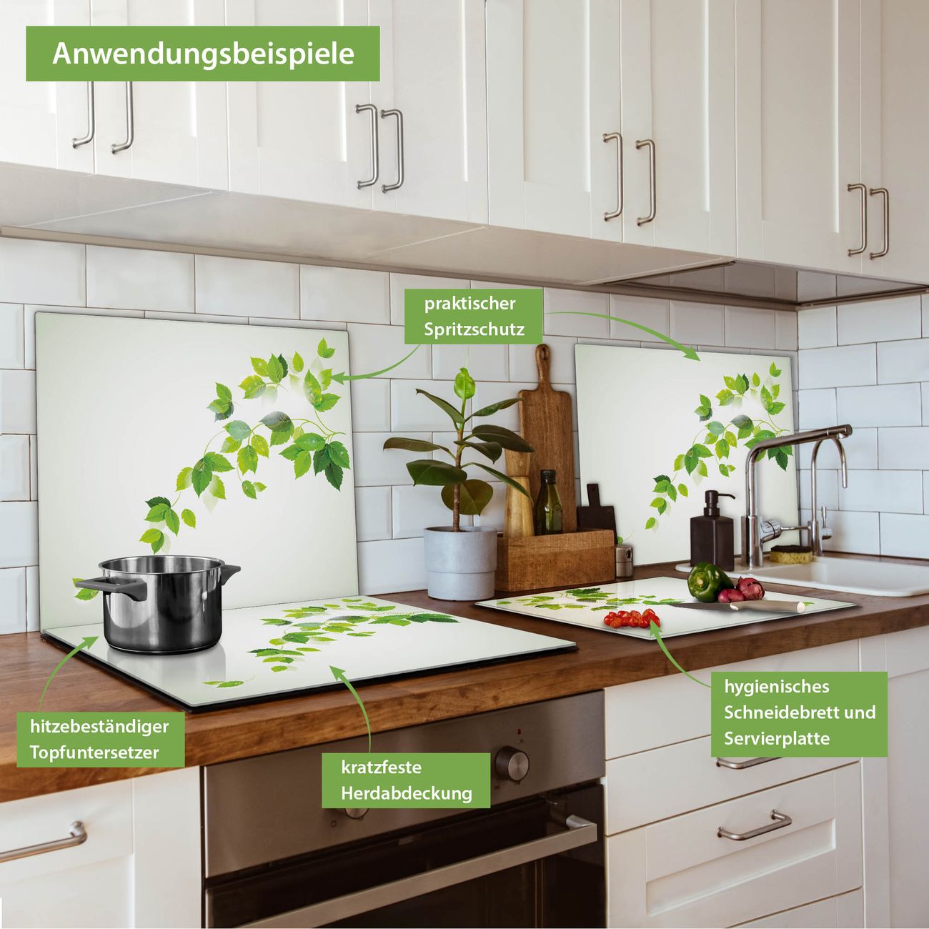 VIELSEITIG: Die Ceranfeldabdeckung ist vielseitig einsetzbar: ob als Spritzschutz hinter dem Herd für Ihre Küche oder als Glas Schneidebrett als hygienische und geruchsneutrale Unterlage. Sie können ebenfalls heiße Töpfe und Pfannen bis 100°C auf der Herdplattenabdeckung abstellen. Sie erhalten ein Multitalent für Ihre Küche. Die banjado Herdabdeckplatte aus Glas mit Motiv Ranke Gelb Weiß verdeckt mit einem schönen Motiv Ihr Ceranfeld bzw. Ihren Induktionsherd. Die Herdabdeckplatte ist vielseitig einsetzbar und passt sich dabei Ihrem Einrichtungsstil an. DESIGN: Die Herdabdeckung Ranke Gelb Weiß besteht aus hochwertigem, gehärtetem Glas mit einem unserer zahlreichen Motive. Sie haben die Wahl zwischen verschiedenen Maßen von einteiligen, zweiteiligen und einer dreiteiligen Herdabdeckung. Wählen Sie was zu Ihrer Einrichtung passt! DETAILS: Die Herdabdeckplatte ist vielseitig einsetzbar. Die Ecken sind für mehr Sicherheit dezent abgerundet, das Glas ist gehärtet. Sie erhalten separate Gummi Abstandshalter, damit Ihre Abdeckung rutschfest auf dem Herd steht. Diese können Sie frei positionieren, sodass die Herdabdeckung perfekt auf Ihrem Ceranfeld sitzt. BANJADO: Wir sind ein kleines Team aus dem Herzen von Sachsen und fertigen jeden Artikel nach Bestellung eigens für Sie an. Sie erhalten also keine preiswerte Importware, sondern Handarbeit. Auf Wunsch sind auch andere Farben und Größen möglich, kontakierten Sie uns gern.