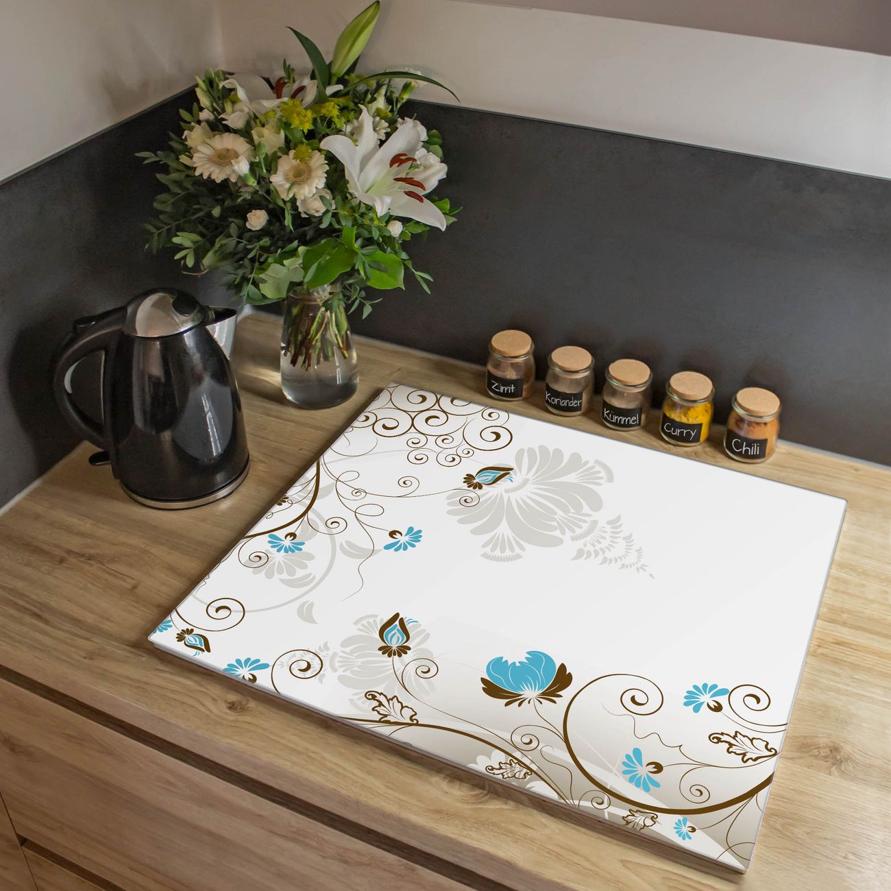 VIELSEITIG: Die Ceranfeldabdeckung ist vielseitig einsetzbar: ob als Spritzschutz hinter dem Herd für Ihre Küche oder als Glas Schneidebrett als hygienische und geruchsneutrale Unterlage. Sie können ebenfalls heiße Töpfe und Pfannen bis 100°C auf der Herdplattenabdeckung abstellen. Sie erhalten ein Multitalent für Ihre Küche. Die banjado Herdabdeckplatte aus Glas mit Motiv Rankenrahmen verdeckt mit einem schönen Motiv Ihr Ceranfeld bzw. Ihren Induktionsherd. Die Herdabdeckplatte ist vielseitig einsetzbar und passt sich dabei Ihrem Einrichtungsstil an. DESIGN: Die Herdabdeckung Rankenrahmen besteht aus hochwertigem, gehärtetem Glas mit einem unserer zahlreichen Motive. Sie haben die Wahl zwischen verschiedenen Maßen von einteiligen, zweiteiligen und einer dreiteiligen Herdabdeckung. Wählen Sie was zu Ihrer Einrichtung passt! DETAILS: Die Herdabdeckplatte ist vielseitig einsetzbar. Die Ecken sind für mehr Sicherheit dezent abgerundet, das Glas ist gehärtet. Sie erhalten separate Gummi Abstandshalter, damit Ihre Abdeckung rutschfest auf dem Herd steht. Diese können Sie frei positionieren, sodass die Herdabdeckung perfekt auf Ihrem Ceranfeld sitzt. BANJADO: Wir sind ein kleines Team aus dem Herzen von Sachsen und fertigen jeden Artikel nach Bestellung eigens für Sie an. Sie erhalten also keine preiswerte Importware, sondern Handarbeit. Auf Wunsch sind auch andere Farben und Größen möglich, kontakierten Sie uns gern.