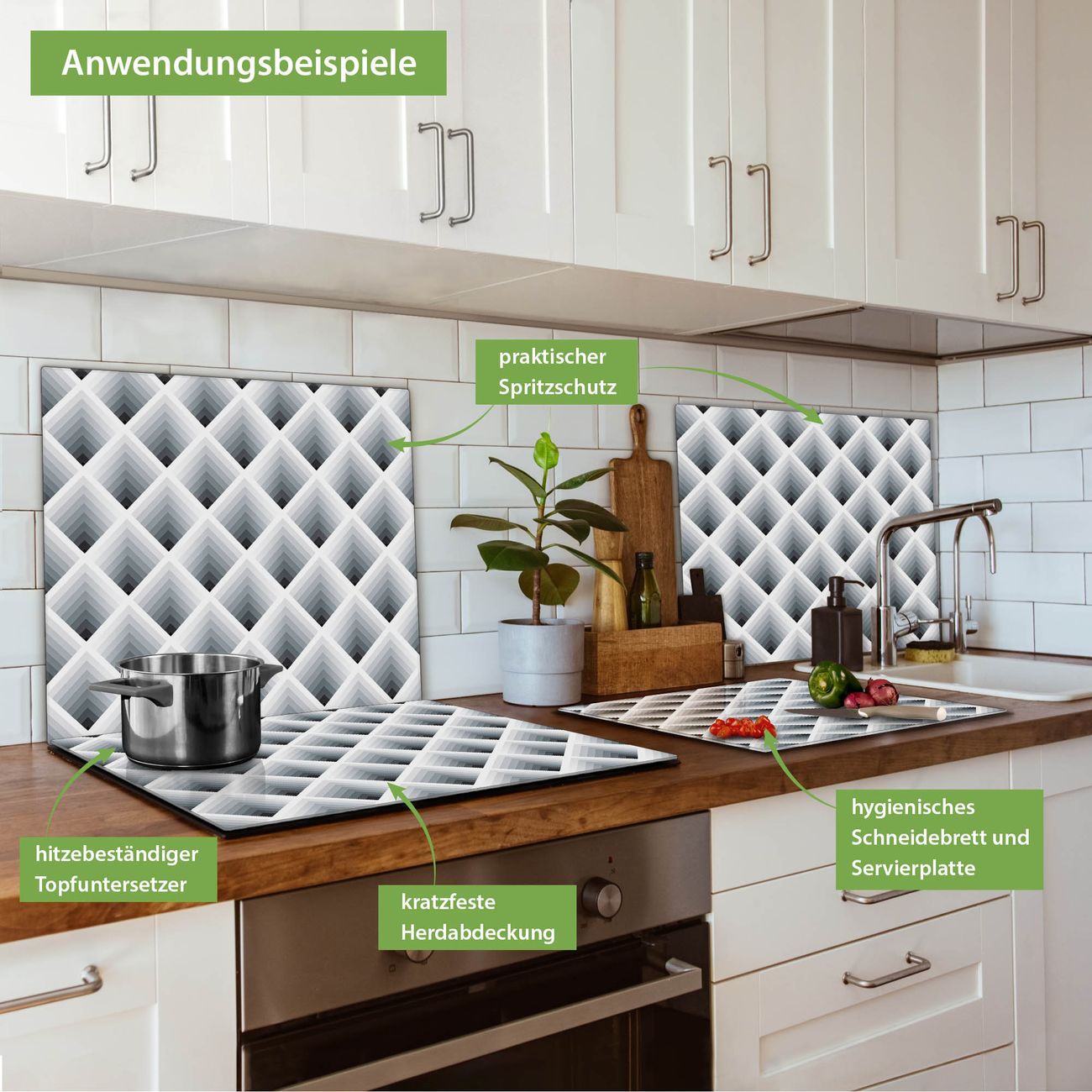 Herdabdeckplatte 1, 2 und 3 teilig Motiv Raster 3D Grau