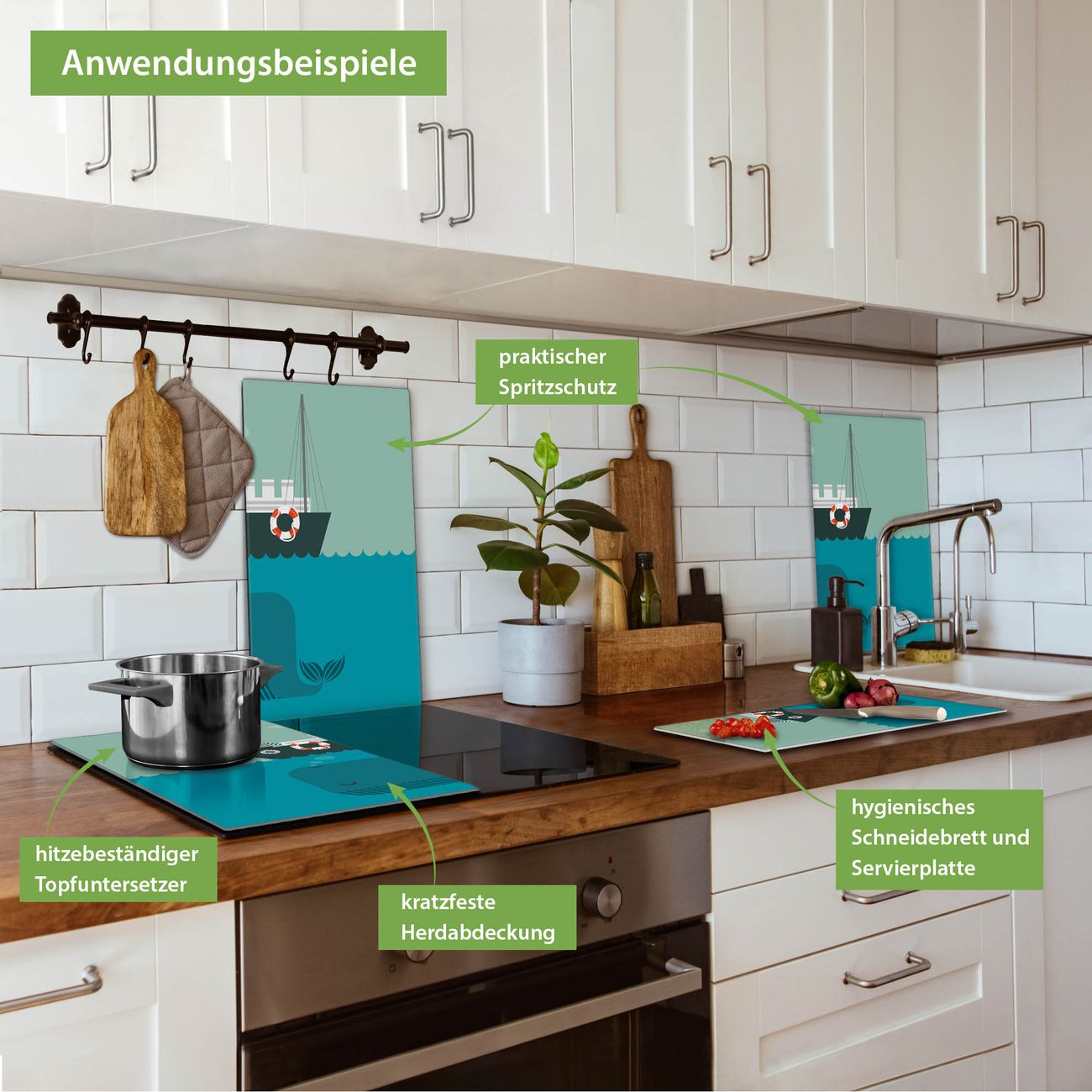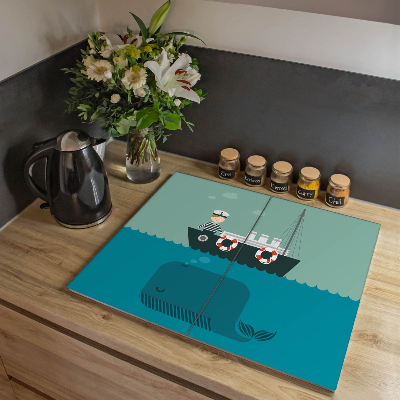 VIELSEITIG: Die Ceranfeldabdeckung ist vielseitig einsetzbar: ob als Spritzschutz hinter dem Herd für Ihre Küche oder als Glas Schneidebrett als hygienische und geruchsneutrale Unterlage. Sie können ebenfalls heiße Töpfe und Pfannen bis 100°C auf der Herdplattenabdeckung abstellen. Sie erhalten ein Multitalent für Ihre Küche. Die banjado Herdabdeckplatte aus Glas mit Motiv Rettet die Wale verdeckt mit einem schönen Motiv Ihr Ceranfeld bzw. Ihren Induktionsherd. Die Herdabdeckplatte ist vielseitig einsetzbar und passt sich dabei Ihrem Einrichtungsstil an. DESIGN: Die Herdabdeckung Rettet die Wale besteht aus hochwertigem, gehärtetem Glas mit einem unserer zahlreichen Motive. Sie haben die Wahl zwischen verschiedenen Maßen von einteiligen, zweiteiligen und einer dreiteiligen Herdabdeckung. Wählen Sie was zu Ihrer Einrichtung passt! DETAILS: Die Herdabdeckplatte ist vielseitig einsetzbar. Die Ecken sind für mehr Sicherheit dezent abgerundet, das Glas ist gehärtet. Sie erhalten separate Gummi Abstandshalter, damit Ihre Abdeckung rutschfest auf dem Herd steht. Diese können Sie frei positionieren, sodass die Herdabdeckung perfekt auf Ihrem Ceranfeld sitzt. BANJADO: Wir sind ein kleines Team aus dem Herzen von Sachsen und fertigen jeden Artikel nach Bestellung eigens für Sie an. Sie erhalten also keine preiswerte Importware, sondern Handarbeit. Auf Wunsch sind auch andere Farben und Größen möglich, kontakierten Sie uns gern.