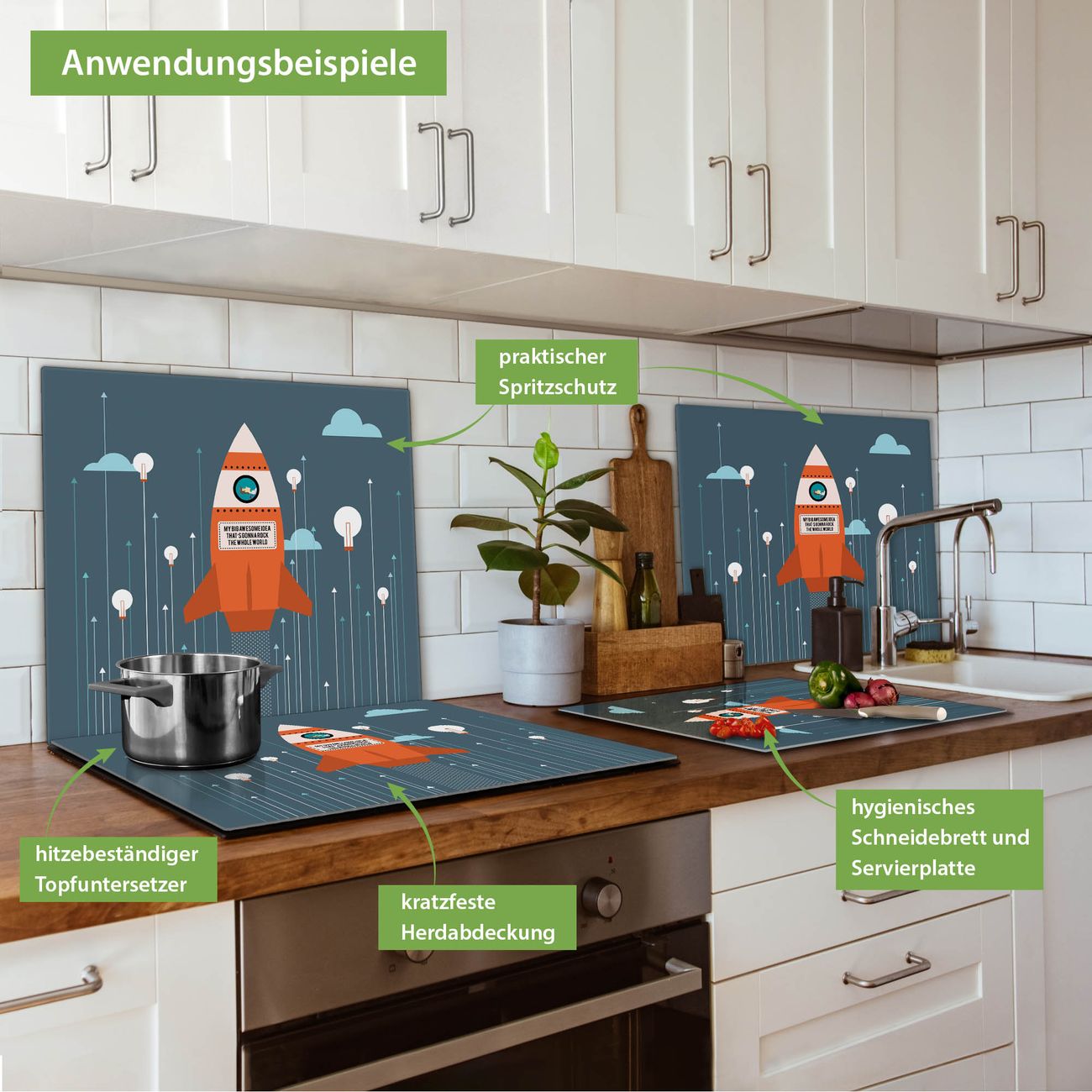 Herdabdeckplatte 1, 2 und 3 teilig Motiv Rock the World