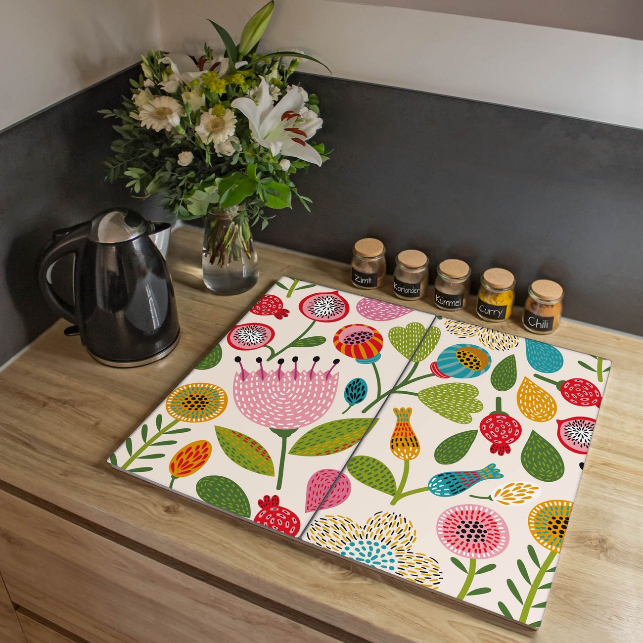 VIELSEITIG: Die Ceranfeldabdeckung ist vielseitig einsetzbar: ob als Spritzschutz hinter dem Herd für Ihre Küche oder als Glas Schneidebrett als hygienische und geruchsneutrale Unterlage. Sie können ebenfalls heiße Töpfe und Pfannen bis 100°C auf der Herdplattenabdeckung abstellen. Sie erhalten ein Multitalent für Ihre Küche. Die banjado Herdabdeckplatte aus Glas mit Motiv Rosa Kelch Hell verdeckt mit einem schönen Motiv Ihr Ceranfeld bzw. Ihren Induktionsherd. Die Herdabdeckplatte ist vielseitig einsetzbar und passt sich dabei Ihrem Einrichtungsstil an. DESIGN: Die Herdabdeckung Rosa Kelch Hell besteht aus hochwertigem, gehärtetem Glas mit einem unserer zahlreichen Motive. Sie haben die Wahl zwischen verschiedenen Maßen von einteiligen, zweiteiligen und einer dreiteiligen Herdabdeckung. Wählen Sie was zu Ihrer Einrichtung passt! DETAILS: Die Herdabdeckplatte ist vielseitig einsetzbar. Die Ecken sind für mehr Sicherheit dezent abgerundet, das Glas ist gehärtet. Sie erhalten separate Gummi Abstandshalter, damit Ihre Abdeckung rutschfest auf dem Herd steht. Diese können Sie frei positionieren, sodass die Herdabdeckung perfekt auf Ihrem Ceranfeld sitzt. BANJADO: Wir sind ein kleines Team aus dem Herzen von Sachsen und fertigen jeden Artikel nach Bestellung eigens für Sie an. Sie erhalten also keine preiswerte Importware, sondern Handarbeit. Auf Wunsch sind auch andere Farben und Größen möglich, kontakierten Sie uns gern.