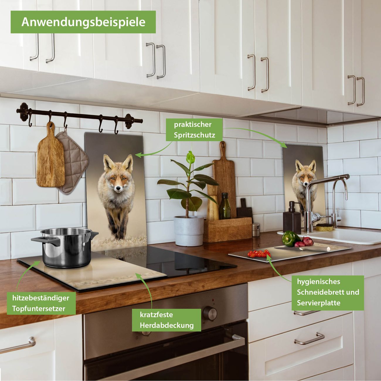 VIELSEITIG: Die Ceranfeldabdeckung ist vielseitig einsetzbar: ob als Spritzschutz hinter dem Herd für Ihre Küche oder als Glas Schneidebrett als hygienische und geruchsneutrale Unterlage. Sie können ebenfalls heiße Töpfe und Pfannen bis 100°C auf der Herdplattenabdeckung abstellen. Sie erhalten ein Multitalent für Ihre Küche. Die banjado Herdabdeckplatte aus Glas mit Motiv Rosalie verdeckt mit einem schönen Motiv Ihr Ceranfeld bzw. Ihren Induktionsherd. Die Herdabdeckplatte ist vielseitig einsetzbar und passt sich dabei Ihrem Einrichtungsstil an. DESIGN: Die Herdabdeckung Rosalie besteht aus hochwertigem, gehärtetem Glas mit einem unserer zahlreichen Motive. Sie haben die Wahl zwischen verschiedenen Maßen von einteiligen, zweiteiligen und einer dreiteiligen Herdabdeckung. Wählen Sie was zu Ihrer Einrichtung passt! DETAILS: Die Herdabdeckplatte ist vielseitig einsetzbar. Die Ecken sind für mehr Sicherheit dezent abgerundet, das Glas ist gehärtet. Sie erhalten separate Gummi Abstandshalter, damit Ihre Abdeckung rutschfest auf dem Herd steht. Diese können Sie frei positionieren, sodass die Herdabdeckung perfekt auf Ihrem Ceranfeld sitzt. BANJADO: Wir sind ein kleines Team aus dem Herzen von Sachsen und fertigen jeden Artikel nach Bestellung eigens für Sie an. Sie erhalten also keine preiswerte Importware, sondern Handarbeit. Auf Wunsch sind auch andere Farben und Größen möglich, kontakierten Sie uns gern.