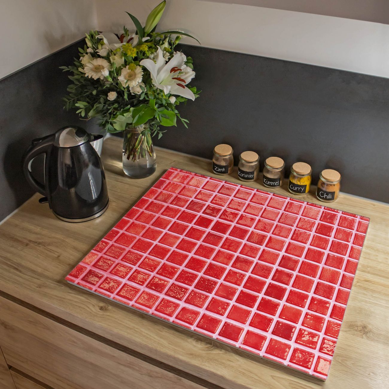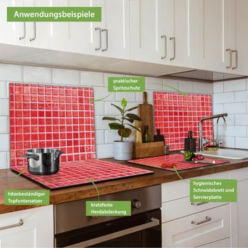 VIELSEITIG: Die Ceranfeldabdeckung ist vielseitig einsetzbar: ob als Spritzschutz hinter dem Herd für Ihre Küche oder als Glas Schneidebrett als hygienische und geruchsneutrale Unterlage. Sie können ebenfalls heiße Töpfe und Pfannen bis 100°C auf der Herdplattenabdeckung abstellen. Sie erhalten ein Multitalent für Ihre Küche. Die banjado Herdabdeckplatte aus Glas mit Motiv Rote Kacheln verdeckt mit einem schönen Motiv Ihr Ceranfeld bzw. Ihren Induktionsherd. Die Herdabdeckplatte ist vielseitig einsetzbar und passt sich dabei Ihrem Einrichtungsstil an. DESIGN: Die Herdabdeckung Rote Kacheln besteht aus hochwertigem, gehärtetem Glas mit einem unserer zahlreichen Motive. Sie haben die Wahl zwischen verschiedenen Maßen von einteiligen, zweiteiligen und einer dreiteiligen Herdabdeckung. Wählen Sie was zu Ihrer Einrichtung passt! DETAILS: Die Herdabdeckplatte ist vielseitig einsetzbar. Die Ecken sind für mehr Sicherheit dezent abgerundet, das Glas ist gehärtet. Sie erhalten separate Gummi Abstandshalter, damit Ihre Abdeckung rutschfest auf dem Herd steht. Diese können Sie frei positionieren, sodass die Herdabdeckung perfekt auf Ihrem Ceranfeld sitzt. BANJADO: Wir sind ein kleines Team aus dem Herzen von Sachsen und fertigen jeden Artikel nach Bestellung eigens für Sie an. Sie erhalten also keine preiswerte Importware, sondern Handarbeit. Auf Wunsch sind auch andere Farben und Größen möglich, kontakierten Sie uns gern.