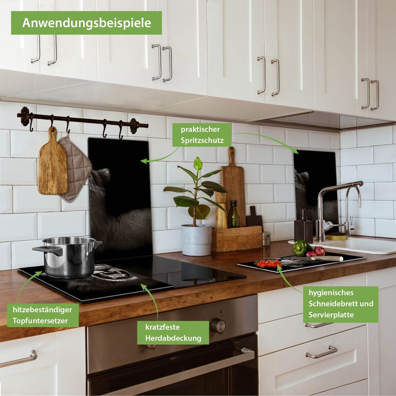 VIELSEITIG: Die Ceranfeldabdeckung ist vielseitig einsetzbar: ob als Spritzschutz hinter dem Herd für Ihre Küche oder als Glas Schneidebrett als hygienische und geruchsneutrale Unterlage. Sie können ebenfalls heiße Töpfe und Pfannen bis 100°C auf der Herdplattenabdeckung abstellen. Sie erhalten ein Multitalent für Ihre Küche. Die banjado Herdabdeckplatte aus Glas mit Motiv Rupert verdeckt mit einem schönen Motiv Ihr Ceranfeld bzw. Ihren Induktionsherd. Die Herdabdeckplatte ist vielseitig einsetzbar und passt sich dabei Ihrem Einrichtungsstil an. DESIGN: Die Herdabdeckung Rupert besteht aus hochwertigem, gehärtetem Glas mit einem unserer zahlreichen Motive. Sie haben die Wahl zwischen verschiedenen Maßen von einteiligen, zweiteiligen und einer dreiteiligen Herdabdeckung. Wählen Sie was zu Ihrer Einrichtung passt! DETAILS: Die Herdabdeckplatte ist vielseitig einsetzbar. Die Ecken sind für mehr Sicherheit dezent abgerundet, das Glas ist gehärtet. Sie erhalten separate Gummi Abstandshalter, damit Ihre Abdeckung rutschfest auf dem Herd steht. Diese können Sie frei positionieren, sodass die Herdabdeckung perfekt auf Ihrem Ceranfeld sitzt. BANJADO: Wir sind ein kleines Team aus dem Herzen von Sachsen und fertigen jeden Artikel nach Bestellung eigens für Sie an. Sie erhalten also keine preiswerte Importware, sondern Handarbeit. Auf Wunsch sind auch andere Farben und Größen möglich, kontakierten Sie uns gern.