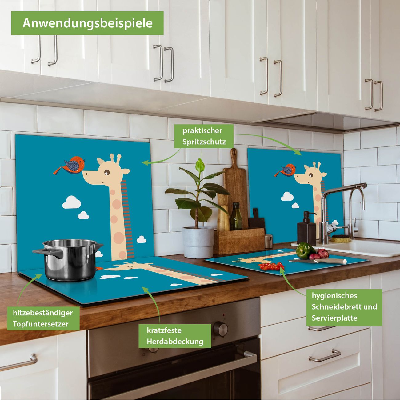 VIELSEITIG: Die Ceranfeldabdeckung ist vielseitig einsetzbar: ob als Spritzschutz hinter dem Herd für Ihre Küche oder als Glas Schneidebrett als hygienische und geruchsneutrale Unterlage. Sie können ebenfalls heiße Töpfe und Pfannen bis 100°C auf der Herdplattenabdeckung abstellen. Sie erhalten ein Multitalent für Ihre Küche. Die banjado Herdabdeckplatte aus Glas mit Motiv Sally und Georg verdeckt mit einem schönen Motiv Ihr Ceranfeld bzw. Ihren Induktionsherd. Die Herdabdeckplatte ist vielseitig einsetzbar und passt sich dabei Ihrem Einrichtungsstil an. DESIGN: Die Herdabdeckung Sally und Georg besteht aus hochwertigem, gehärtetem Glas mit einem unserer zahlreichen Motive. Sie haben die Wahl zwischen verschiedenen Maßen von einteiligen, zweiteiligen und einer dreiteiligen Herdabdeckung. Wählen Sie was zu Ihrer Einrichtung passt! DETAILS: Die Herdabdeckplatte ist vielseitig einsetzbar. Die Ecken sind für mehr Sicherheit dezent abgerundet, das Glas ist gehärtet. Sie erhalten separate Gummi Abstandshalter, damit Ihre Abdeckung rutschfest auf dem Herd steht. Diese können Sie frei positionieren, sodass die Herdabdeckung perfekt auf Ihrem Ceranfeld sitzt. BANJADO: Wir sind ein kleines Team aus dem Herzen von Sachsen und fertigen jeden Artikel nach Bestellung eigens für Sie an. Sie erhalten also keine preiswerte Importware, sondern Handarbeit. Auf Wunsch sind auch andere Farben und Größen möglich, kontakierten Sie uns gern.