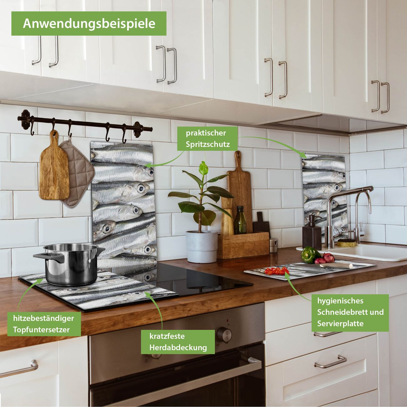 Herdabdeckplatte 1, 2 und 3 teilig Motiv Sardinen