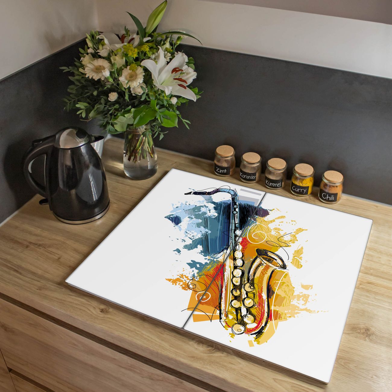 Herdabdeckplatte 1, 2 und 3 teilig Motiv Saxophon