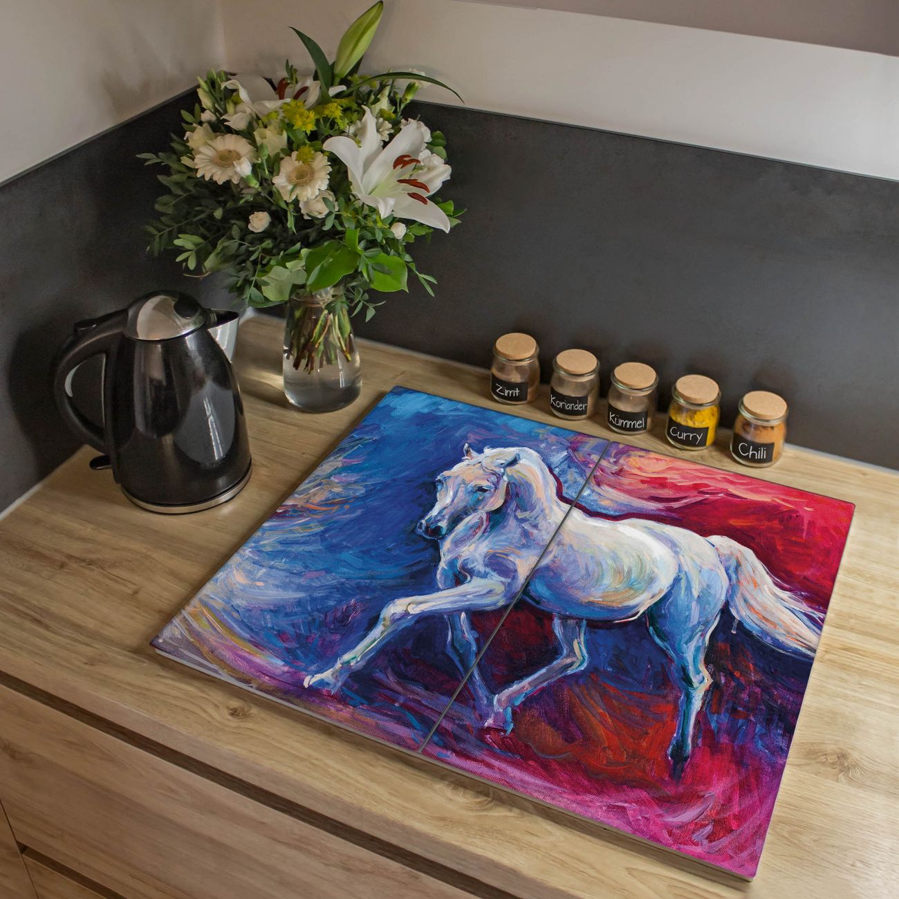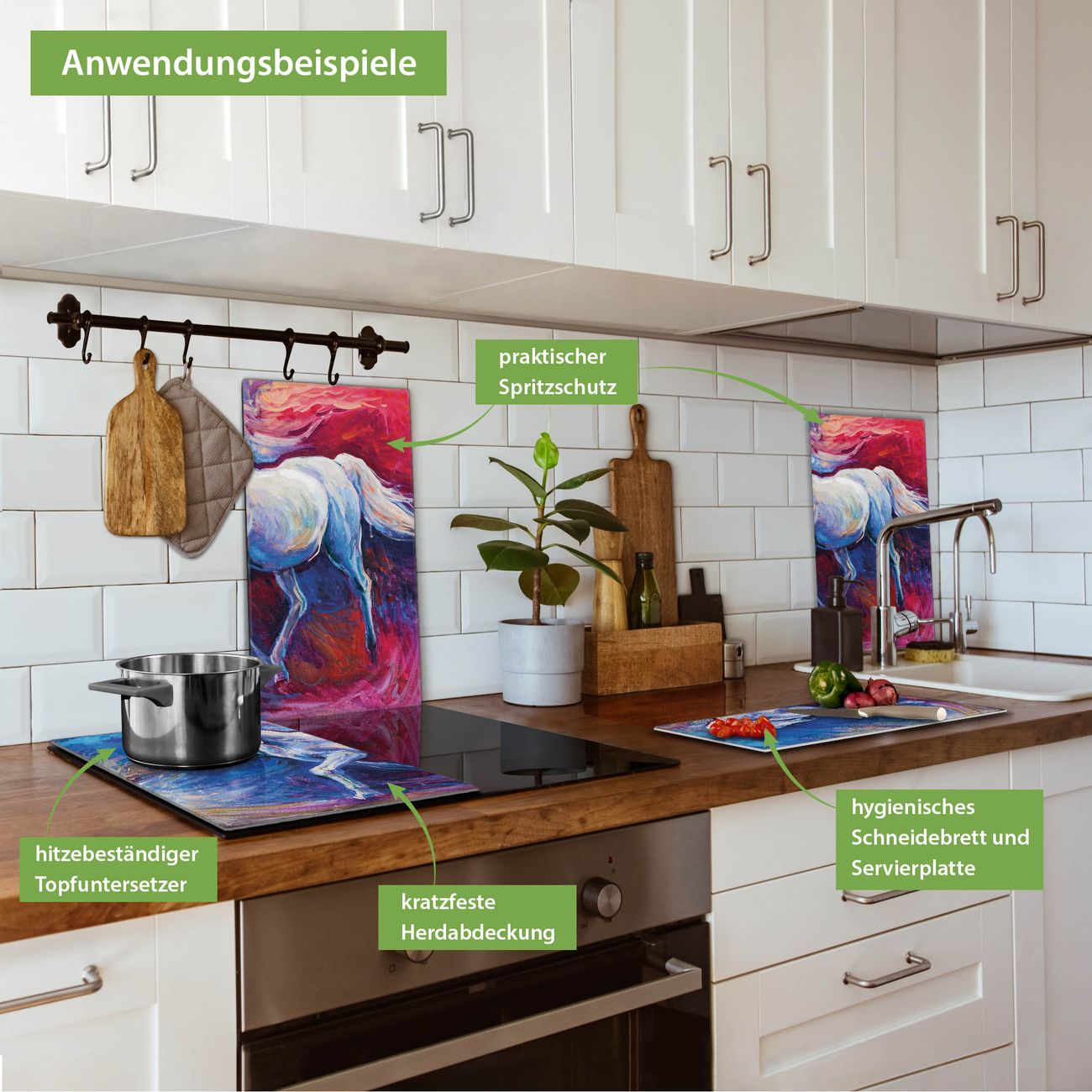 VIELSEITIG: Die Ceranfeldabdeckung ist vielseitig einsetzbar: ob als Spritzschutz hinter dem Herd für Ihre Küche oder als Glas Schneidebrett als hygienische und geruchsneutrale Unterlage. Sie können ebenfalls heiße Töpfe und Pfannen bis 100°C auf der Herdplattenabdeckung abstellen. Sie erhalten ein Multitalent für Ihre Küche. Die banjado Herdabdeckplatte aus Glas mit Motiv Schimmel verdeckt mit einem schönen Motiv Ihr Ceranfeld bzw. Ihren Induktionsherd. Die Herdabdeckplatte ist vielseitig einsetzbar und passt sich dabei Ihrem Einrichtungsstil an. DESIGN: Die Herdabdeckung Schimmel besteht aus hochwertigem, gehärtetem Glas mit einem unserer zahlreichen Motive. Sie haben die Wahl zwischen verschiedenen Maßen von einteiligen, zweiteiligen und einer dreiteiligen Herdabdeckung. Wählen Sie was zu Ihrer Einrichtung passt! DETAILS: Die Herdabdeckplatte ist vielseitig einsetzbar. Die Ecken sind für mehr Sicherheit dezent abgerundet, das Glas ist gehärtet. Sie erhalten separate Gummi Abstandshalter, damit Ihre Abdeckung rutschfest auf dem Herd steht. Diese können Sie frei positionieren, sodass die Herdabdeckung perfekt auf Ihrem Ceranfeld sitzt. BANJADO: Wir sind ein kleines Team aus dem Herzen von Sachsen und fertigen jeden Artikel nach Bestellung eigens für Sie an. Sie erhalten also keine preiswerte Importware, sondern Handarbeit. Auf Wunsch sind auch andere Farben und Größen möglich, kontakierten Sie uns gern.