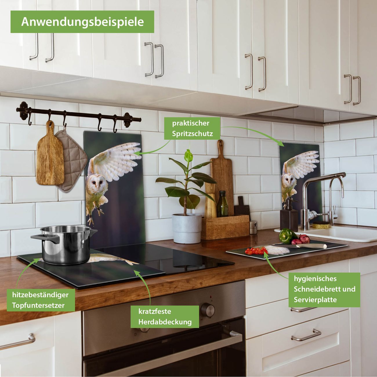 Herdabdeckplatte 1, 2 und 3 teilig Motiv Schleiereule