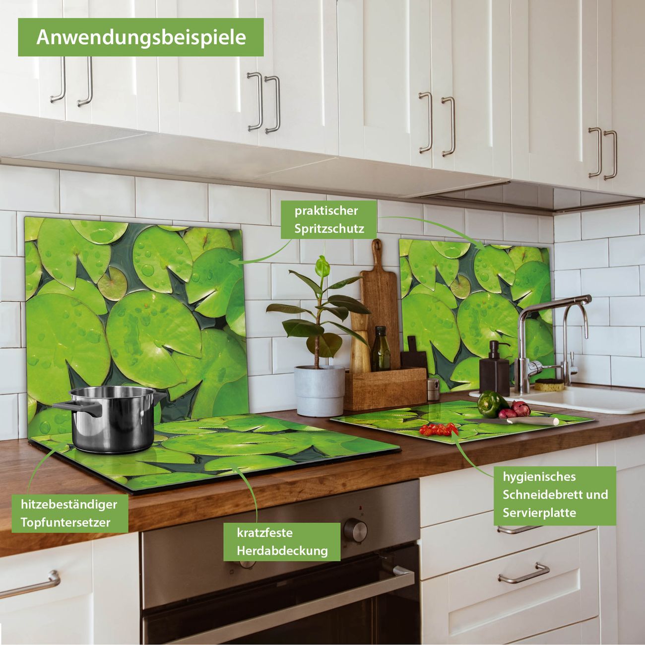 Herdabdeckplatte 1, 2 und 3 teilig Motiv Seerosenblätter