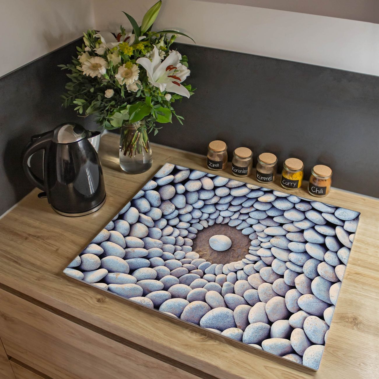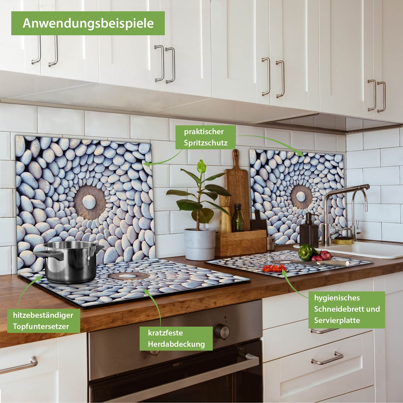 VIELSEITIG: Die Ceranfeldabdeckung ist vielseitig einsetzbar: ob als Spritzschutz hinter dem Herd für Ihre Küche oder als Glas Schneidebrett als hygienische und geruchsneutrale Unterlage. Sie können ebenfalls heiße Töpfe und Pfannen bis 100°C auf der Herdplattenabdeckung abstellen. Sie erhalten ein Multitalent für Ihre Küche. Die banjado Herdabdeckplatte aus Glas mit Motiv Steinkreis verdeckt mit einem schönen Motiv Ihr Ceranfeld bzw. Ihren Induktionsherd. Die Herdabdeckplatte ist vielseitig einsetzbar und passt sich dabei Ihrem Einrichtungsstil an. DESIGN: Die Herdabdeckung Steinkreis besteht aus hochwertigem, gehärtetem Glas mit einem unserer zahlreichen Motive. Sie haben die Wahl zwischen verschiedenen Maßen von einteiligen, zweiteiligen und einer dreiteiligen Herdabdeckung. Wählen Sie was zu Ihrer Einrichtung passt! DETAILS: Die Herdabdeckplatte ist vielseitig einsetzbar. Die Ecken sind für mehr Sicherheit dezent abgerundet, das Glas ist gehärtet. Sie erhalten separate Gummi Abstandshalter, damit Ihre Abdeckung rutschfest auf dem Herd steht. Diese können Sie frei positionieren, sodass die Herdabdeckung perfekt auf Ihrem Ceranfeld sitzt. BANJADO: Wir sind ein kleines Team aus dem Herzen von Sachsen und fertigen jeden Artikel nach Bestellung eigens für Sie an. Sie erhalten also keine preiswerte Importware, sondern Handarbeit. Auf Wunsch sind auch andere Farben und Größen möglich, kontakierten Sie uns gern.
