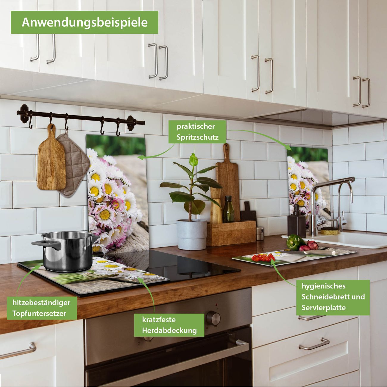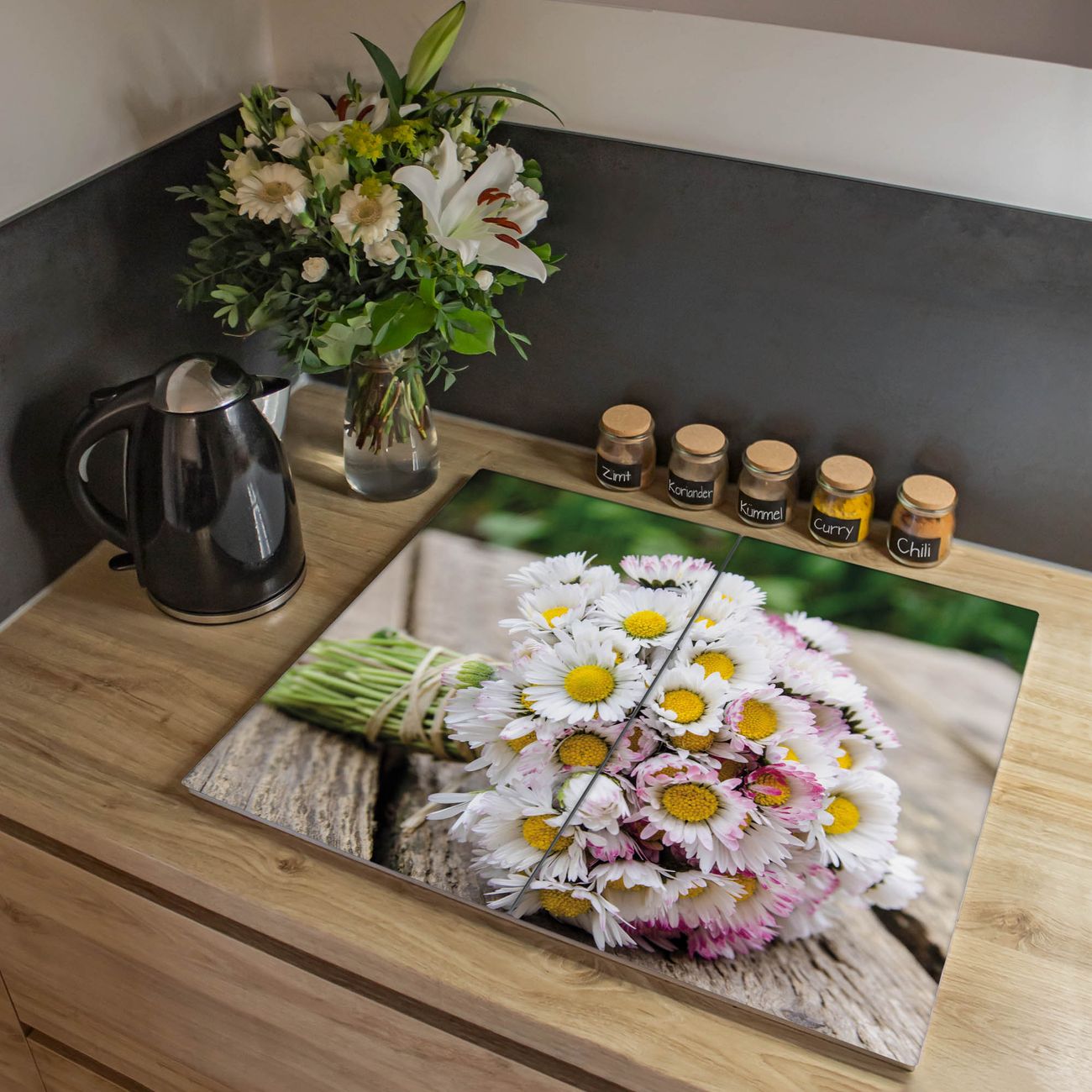 Herdabdeckplatte 1, 2 und 3 teilig Motiv Strauß Gänseblümchen