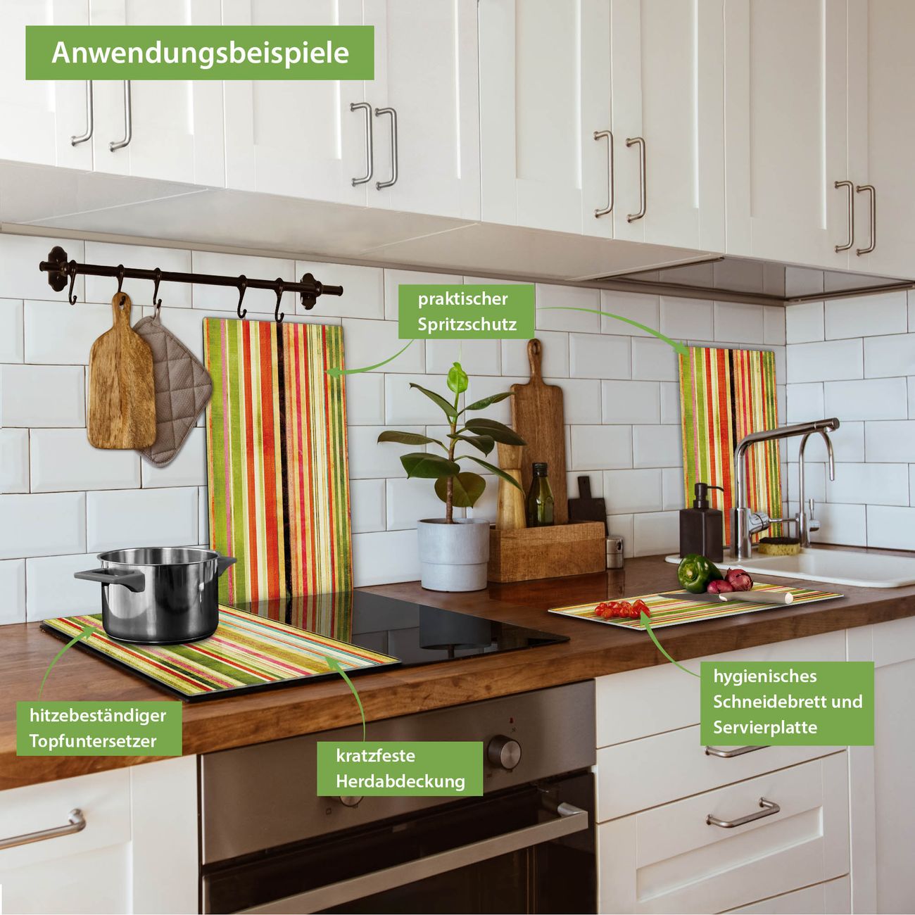 Herdabdeckplatte 1, 2 und 3 teilig Motiv Streifen