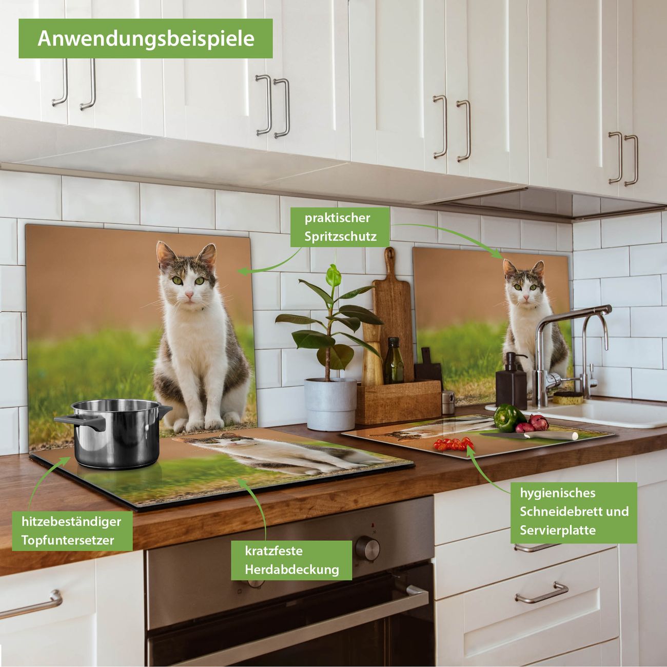 VIELSEITIG: Die Ceranfeldabdeckung ist vielseitig einsetzbar: ob als Spritzschutz hinter dem Herd für Ihre Küche oder als Glas Schneidebrett als hygienische und geruchsneutrale Unterlage. Sie können ebenfalls heiße Töpfe und Pfannen bis 100°C auf der Herdplattenabdeckung abstellen. Sie erhalten ein Multitalent für Ihre Küche. Die banjado Herdabdeckplatte aus Glas mit Motiv Suse verdeckt mit einem schönen Motiv Ihr Ceranfeld bzw. Ihren Induktionsherd. Die Herdabdeckplatte ist vielseitig einsetzbar und passt sich dabei Ihrem Einrichtungsstil an. DESIGN: Die Herdabdeckung Suse besteht aus hochwertigem, gehärtetem Glas mit einem unserer zahlreichen Motive. Sie haben die Wahl zwischen verschiedenen Maßen von einteiligen, zweiteiligen und einer dreiteiligen Herdabdeckung. Wählen Sie was zu Ihrer Einrichtung passt! DETAILS: Die Herdabdeckplatte ist vielseitig einsetzbar. Die Ecken sind für mehr Sicherheit dezent abgerundet, das Glas ist gehärtet. Sie erhalten separate Gummi Abstandshalter, damit Ihre Abdeckung rutschfest auf dem Herd steht. Diese können Sie frei positionieren, sodass die Herdabdeckung perfekt auf Ihrem Ceranfeld sitzt. BANJADO: Wir sind ein kleines Team aus dem Herzen von Sachsen und fertigen jeden Artikel nach Bestellung eigens für Sie an. Sie erhalten also keine preiswerte Importware, sondern Handarbeit. Auf Wunsch sind auch andere Farben und Größen möglich, kontakierten Sie uns gern.