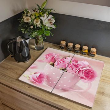 Herdabdeckplatte 1, 2 und 3 teilig Motiv Tasse Voll Rosen