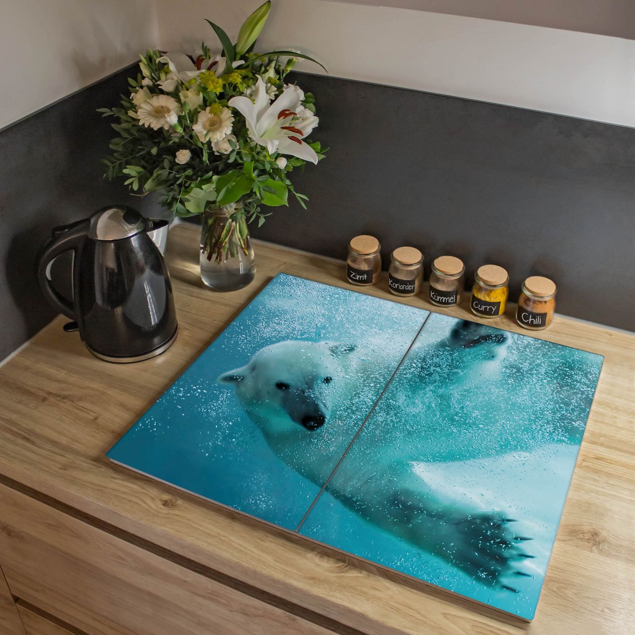 Herdabdeckplatte 1, 2 und 3 teilig Motiv Tauchender Eisbär