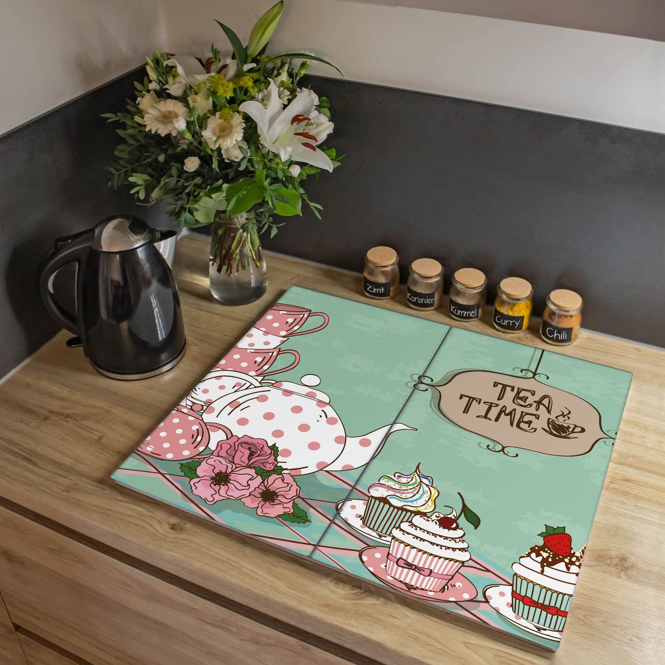 Herdabdeckplatte 1, 2 und 3 teilig Motiv Tea Time