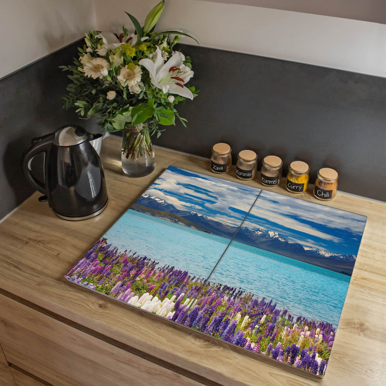 VIELSEITIG: Die Ceranfeldabdeckung ist vielseitig einsetzbar: ob als Spritzschutz hinter dem Herd für Ihre Küche oder als Glas Schneidebrett als hygienische und geruchsneutrale Unterlage. Sie können ebenfalls heiße Töpfe und Pfannen bis 100°C auf der Herdplattenabdeckung abstellen. Sie erhalten ein Multitalent für Ihre Küche. Die banjado Herdabdeckplatte aus Glas mit Motiv Tekapo See verdeckt mit einem schönen Motiv Ihr Ceranfeld bzw. Ihren Induktionsherd. Die Herdabdeckplatte ist vielseitig einsetzbar und passt sich dabei Ihrem Einrichtungsstil an. DESIGN: Die Herdabdeckung Tekapo See besteht aus hochwertigem, gehärtetem Glas mit einem unserer zahlreichen Motive. Sie haben die Wahl zwischen verschiedenen Maßen von einteiligen, zweiteiligen und einer dreiteiligen Herdabdeckung. Wählen Sie was zu Ihrer Einrichtung passt! DETAILS: Die Herdabdeckplatte ist vielseitig einsetzbar. Die Ecken sind für mehr Sicherheit dezent abgerundet, das Glas ist gehärtet. Sie erhalten separate Gummi Abstandshalter, damit Ihre Abdeckung rutschfest auf dem Herd steht. Diese können Sie frei positionieren, sodass die Herdabdeckung perfekt auf Ihrem Ceranfeld sitzt. BANJADO: Wir sind ein kleines Team aus dem Herzen von Sachsen und fertigen jeden Artikel nach Bestellung eigens für Sie an. Sie erhalten also keine preiswerte Importware, sondern Handarbeit. Auf Wunsch sind auch andere Farben und Größen möglich, kontakierten Sie uns gern.