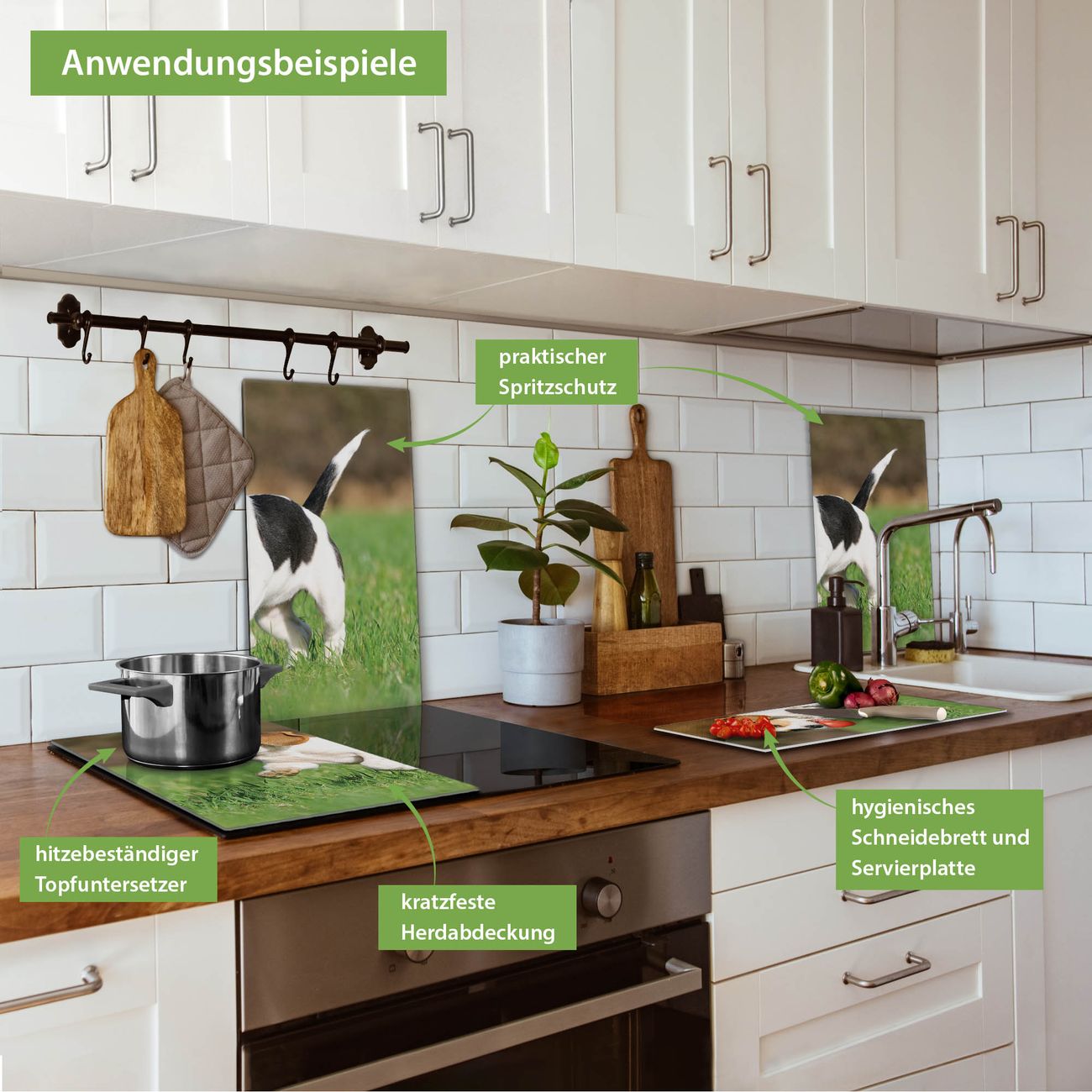 VIELSEITIG: Die Ceranfeldabdeckung ist vielseitig einsetzbar: ob als Spritzschutz hinter dem Herd für Ihre Küche oder als Glas Schneidebrett als hygienische und geruchsneutrale Unterlage. Sie können ebenfalls heiße Töpfe und Pfannen bis 100°C auf der Herdplattenabdeckung abstellen. Sie erhalten ein Multitalent für Ihre Küche. Die banjado Herdabdeckplatte aus Glas mit Motiv Trixi verdeckt mit einem schönen Motiv Ihr Ceranfeld bzw. Ihren Induktionsherd. Die Herdabdeckplatte ist vielseitig einsetzbar und passt sich dabei Ihrem Einrichtungsstil an. DESIGN: Die Herdabdeckung Trixi besteht aus hochwertigem, gehärtetem Glas mit einem unserer zahlreichen Motive. Sie haben die Wahl zwischen verschiedenen Maßen von einteiligen, zweiteiligen und einer dreiteiligen Herdabdeckung. Wählen Sie was zu Ihrer Einrichtung passt! DETAILS: Die Herdabdeckplatte ist vielseitig einsetzbar. Die Ecken sind für mehr Sicherheit dezent abgerundet, das Glas ist gehärtet. Sie erhalten separate Gummi Abstandshalter, damit Ihre Abdeckung rutschfest auf dem Herd steht. Diese können Sie frei positionieren, sodass die Herdabdeckung perfekt auf Ihrem Ceranfeld sitzt. BANJADO: Wir sind ein kleines Team aus dem Herzen von Sachsen und fertigen jeden Artikel nach Bestellung eigens für Sie an. Sie erhalten also keine preiswerte Importware, sondern Handarbeit. Auf Wunsch sind auch andere Farben und Größen möglich, kontakierten Sie uns gern.